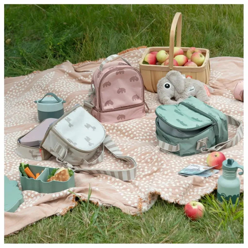 - Le lunchbag Croco est parfait pour garder le goûter ou des boissons bien au chaud ou au frais. Il est fabriqué en 100% polyester avec un tissu isolant à l’intérieur. Ce sac est idéal pour toutes les lunch boxes et bouteilles de Done by Deer. Le sac a deux compartiments et une sangle d’épaules ajustable. Grâce à ces deux zips, il est facile à ouvrir pour un enfant. À l’intérieur, il y a une étiquette décorée de Croco pour inscrire le nom de l’enfant. Le sac isotherme est dans un joli vert, tout imprimé de Croco, le crocodile. Les sangles ont les rayures signature de Done by Deer en beige. Le tissu durable est résistant à l’eau et facile à nettoyer avec un chiffon humide.