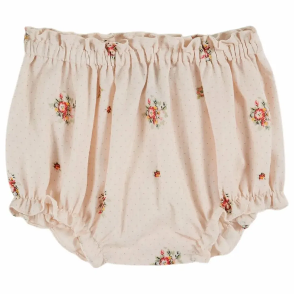 - Bloomer en flanelle de coton toute douce, imprimée de bouquets de fleurettes multicolores sur un fond rose très pâle.