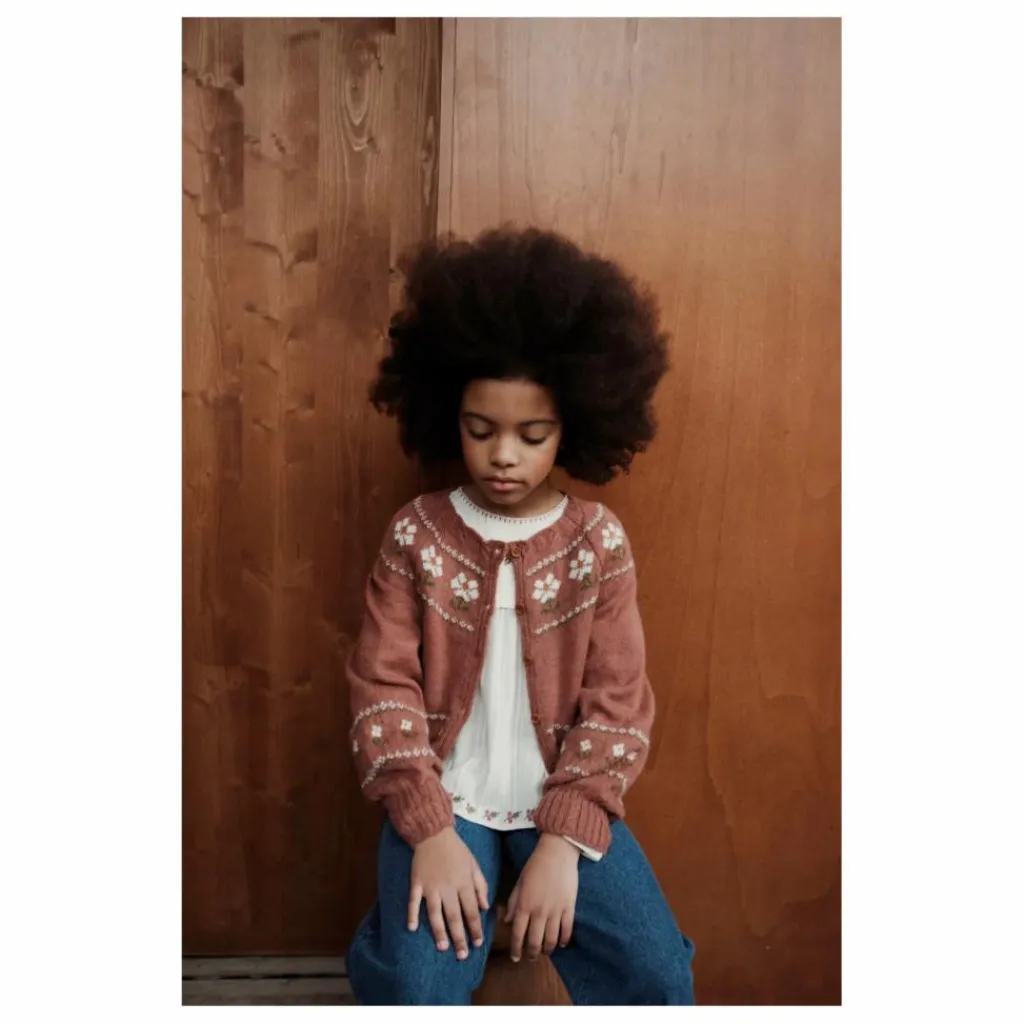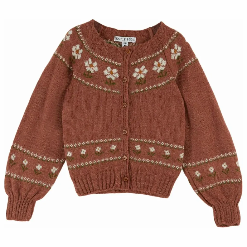 - Cardigan jacquard vieux rose en laine d’alpaga mélangée. Ce lainage est tricoté au point de jersey dans un fil plutôt fin.