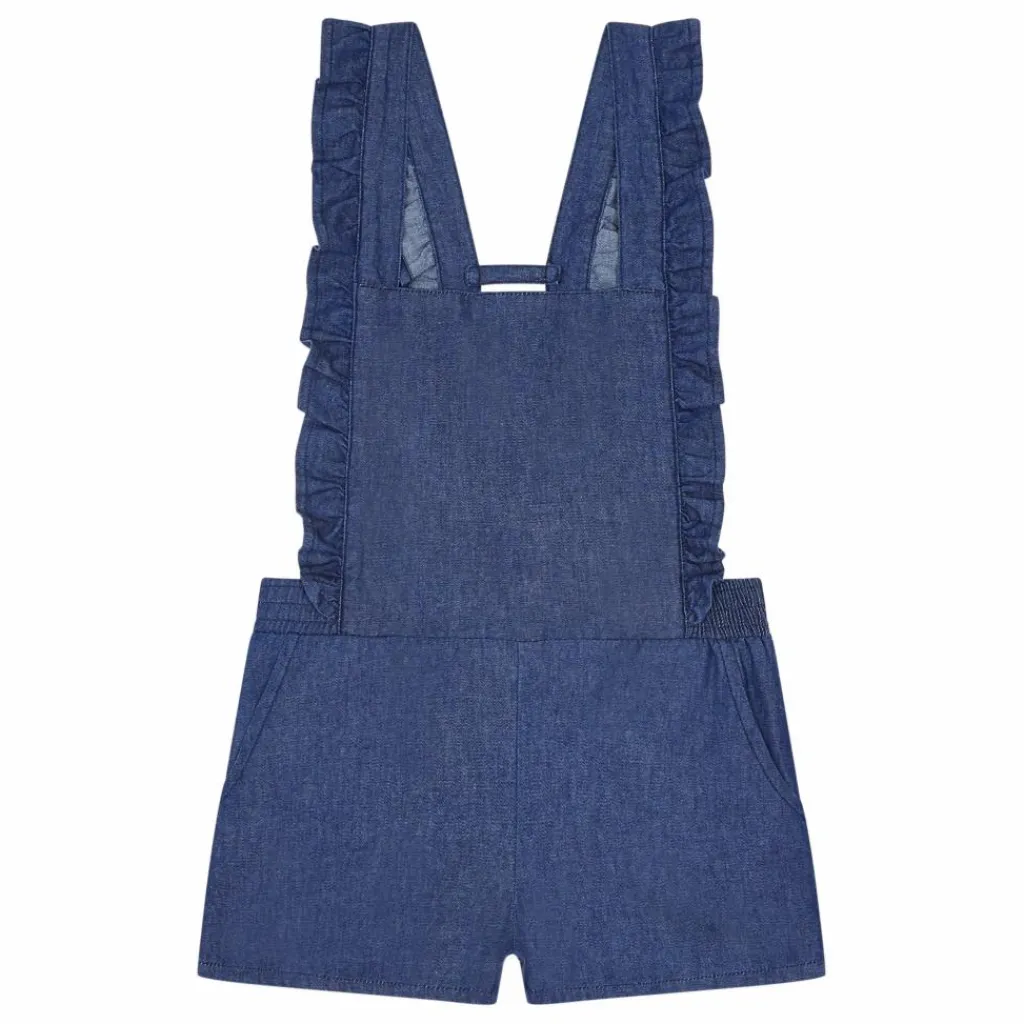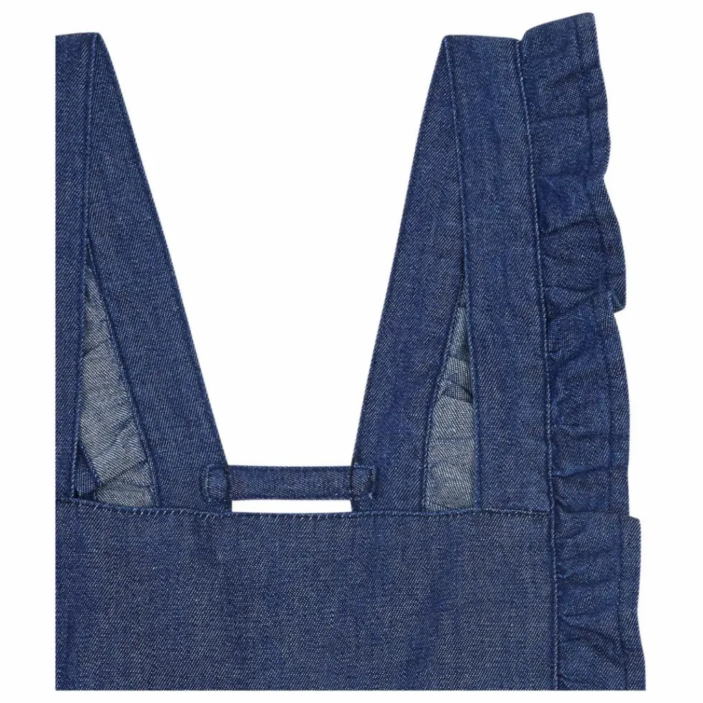 - Encolure carrée, Poches italiennes, Taille élastiquée, Bretelles avec boutons, Bretelles volantées