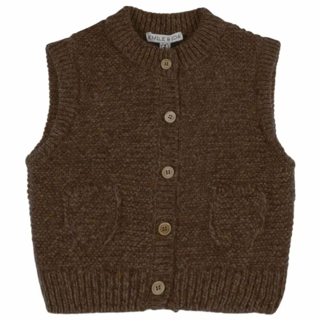 - Cardigan sans manches en laine de mouton et d’alpaga, dans une teinte vert olive.