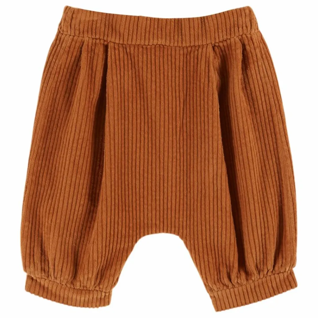 - Pantalon sarouel en velours de coton à grosses côtes caramel.
