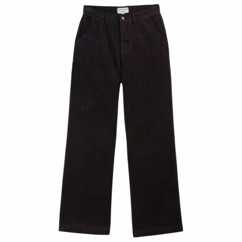 - Pantalon en velours de coton à grosses côtes rouge brique.