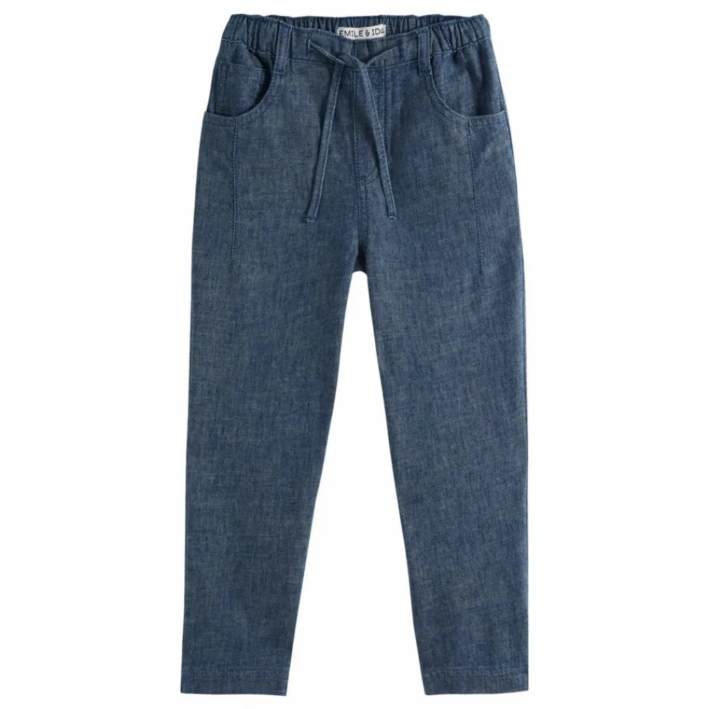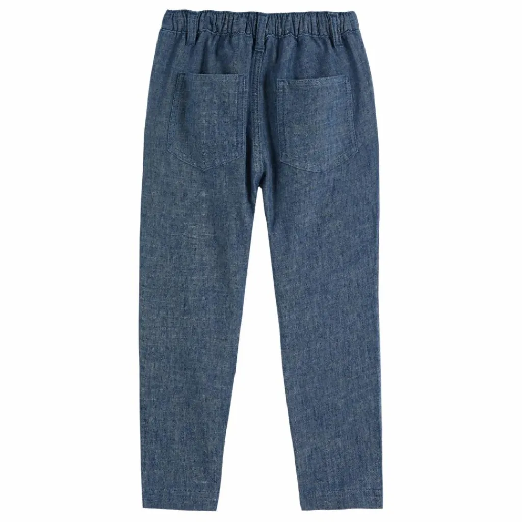 - 5 poches, Taille élastiquée, Taille ajustable par des cordons de serrage