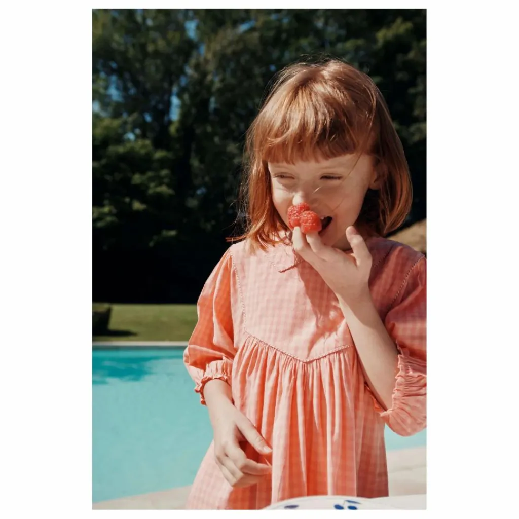 - Robe en coton et modal vichy rose et rose.