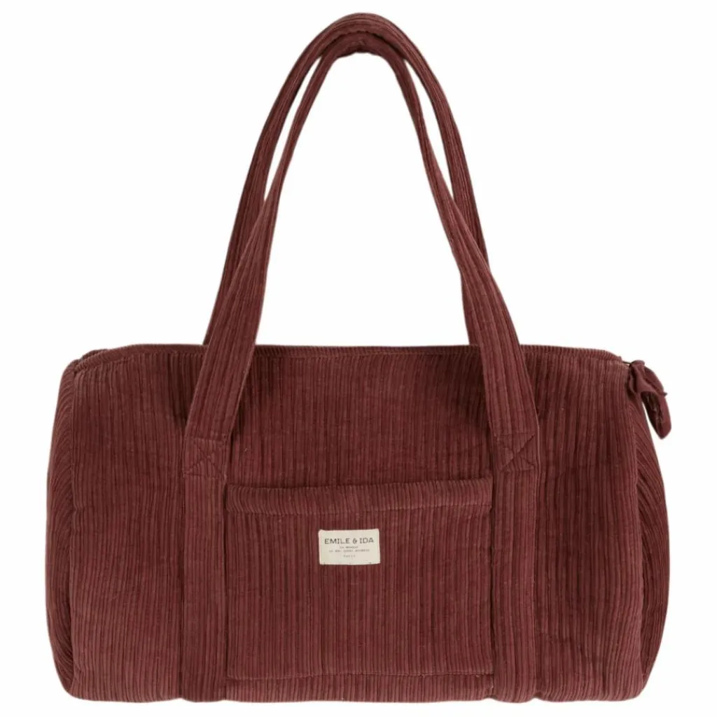 - Sac polochon moletonné en velours de coton à grosses côtes violine.