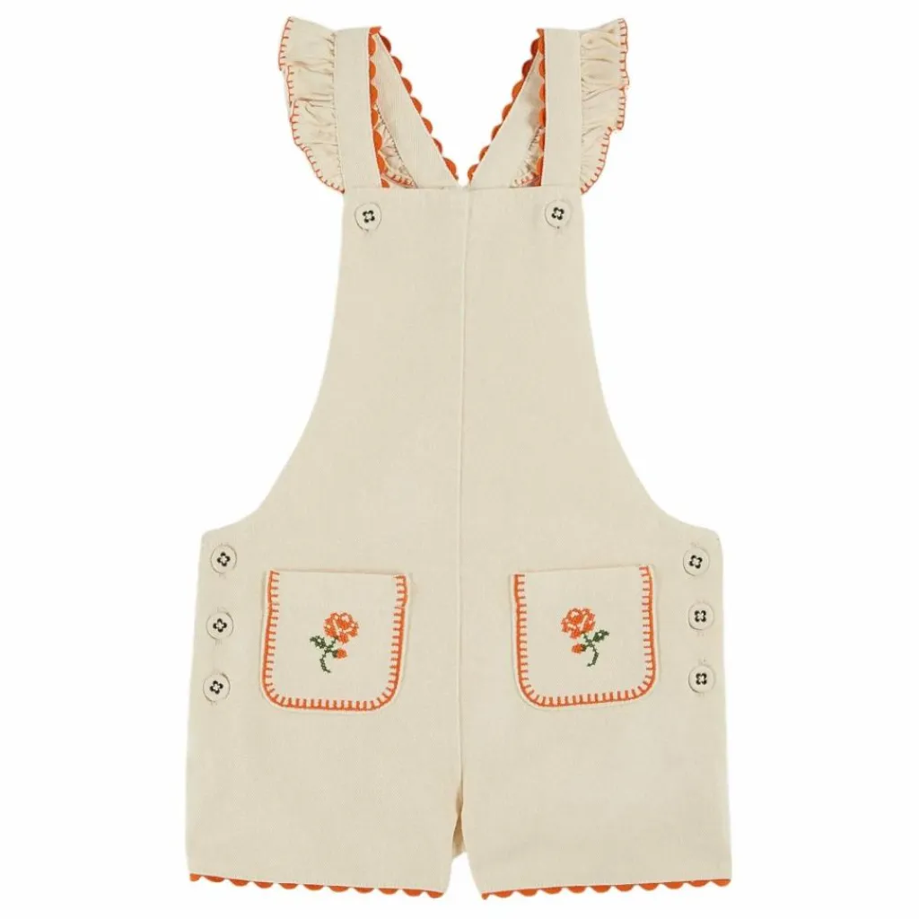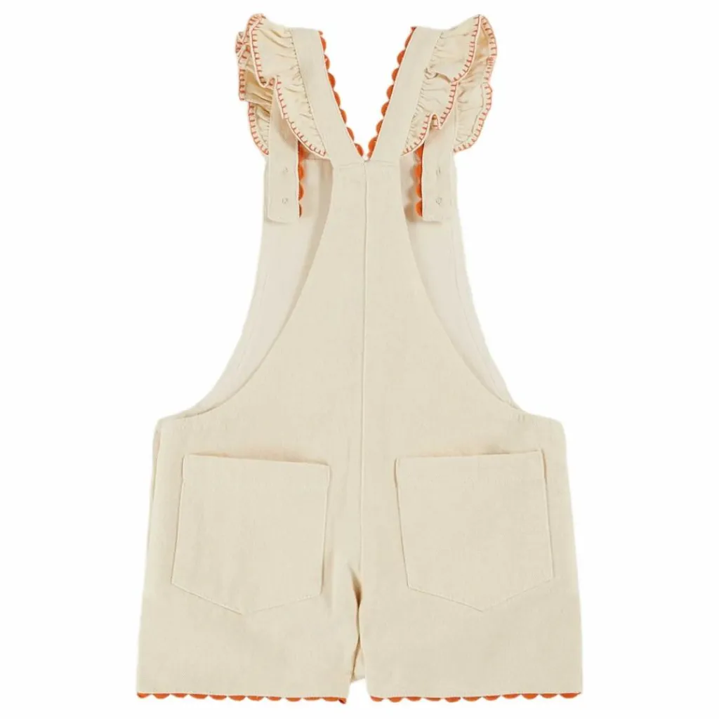 - Salopette short en toile de coton denim écru.