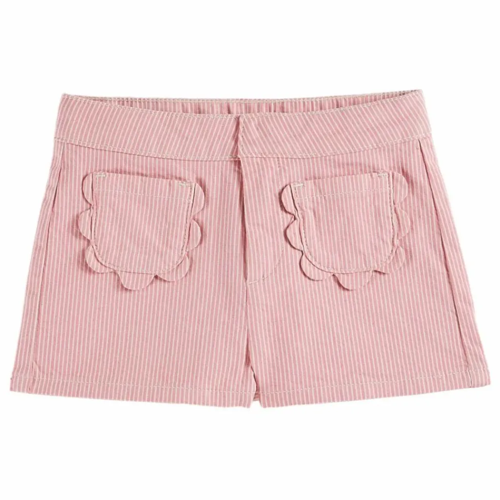 - Short en toile de coton et élastanne rose bonbon rayé de blanc.