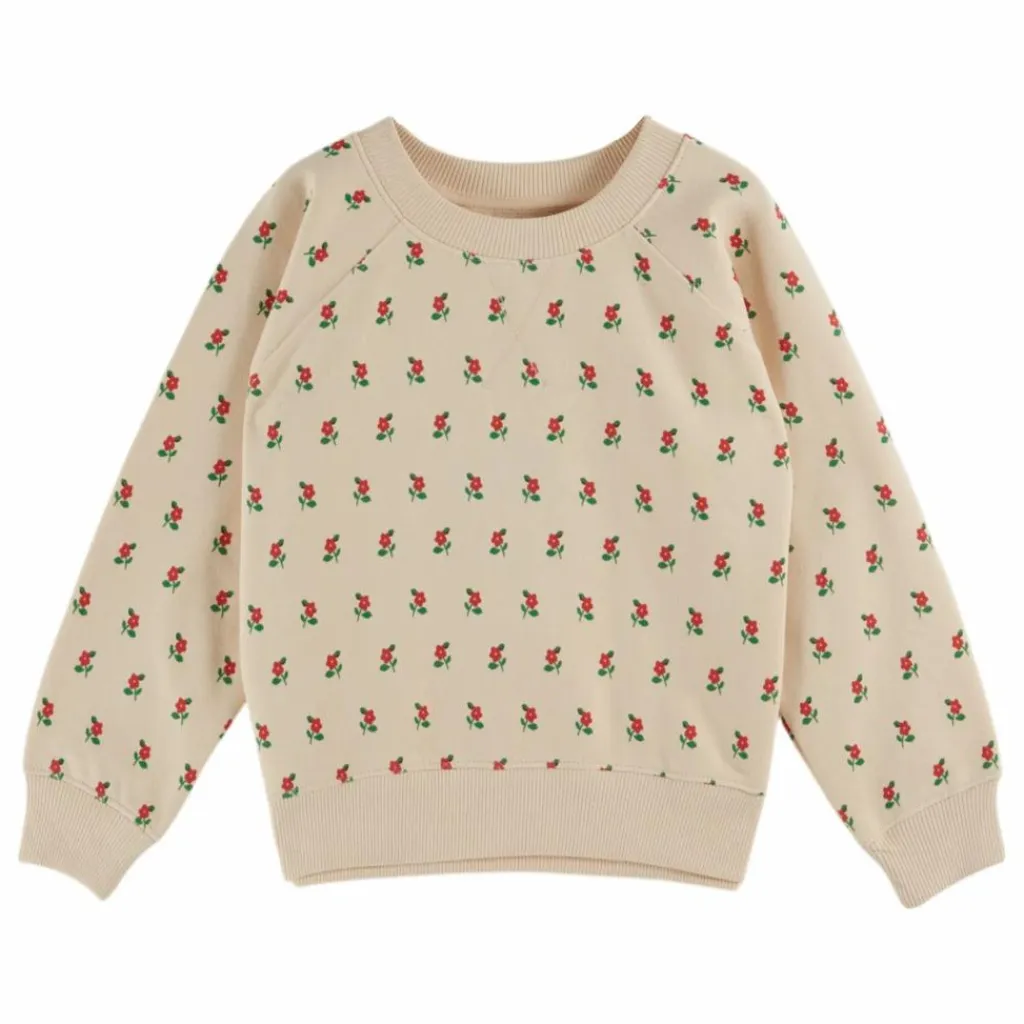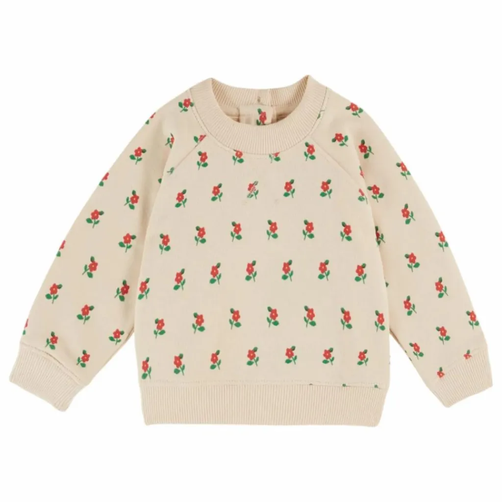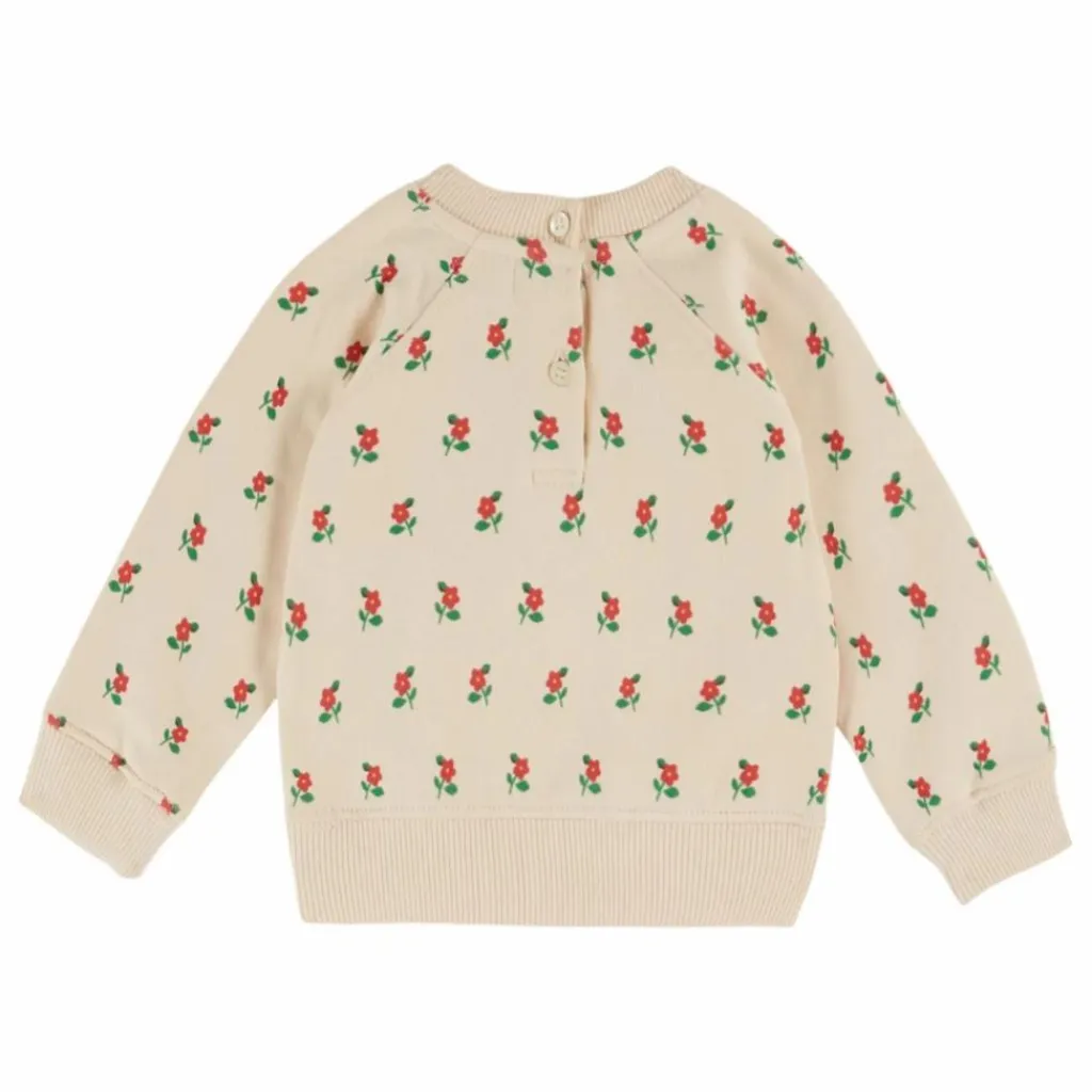 - Sweatshirt en jersey de coton biologique molletonné et gratté crème imprimé de coquelicots rouges en all-over.