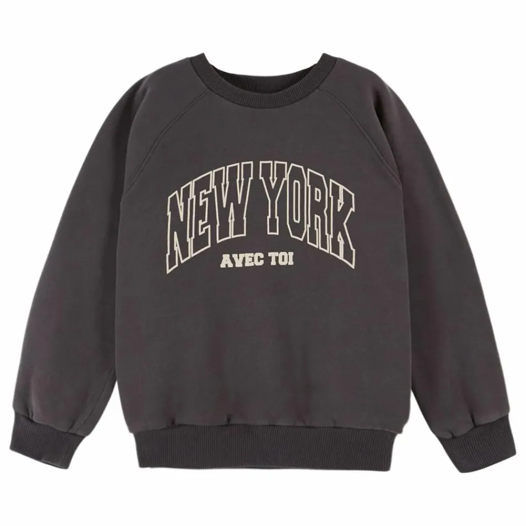 - Sweatshirt en jersey de coton biologique molletonné et gratté bitume imprimé » New York avec toi » sur la poitrine.