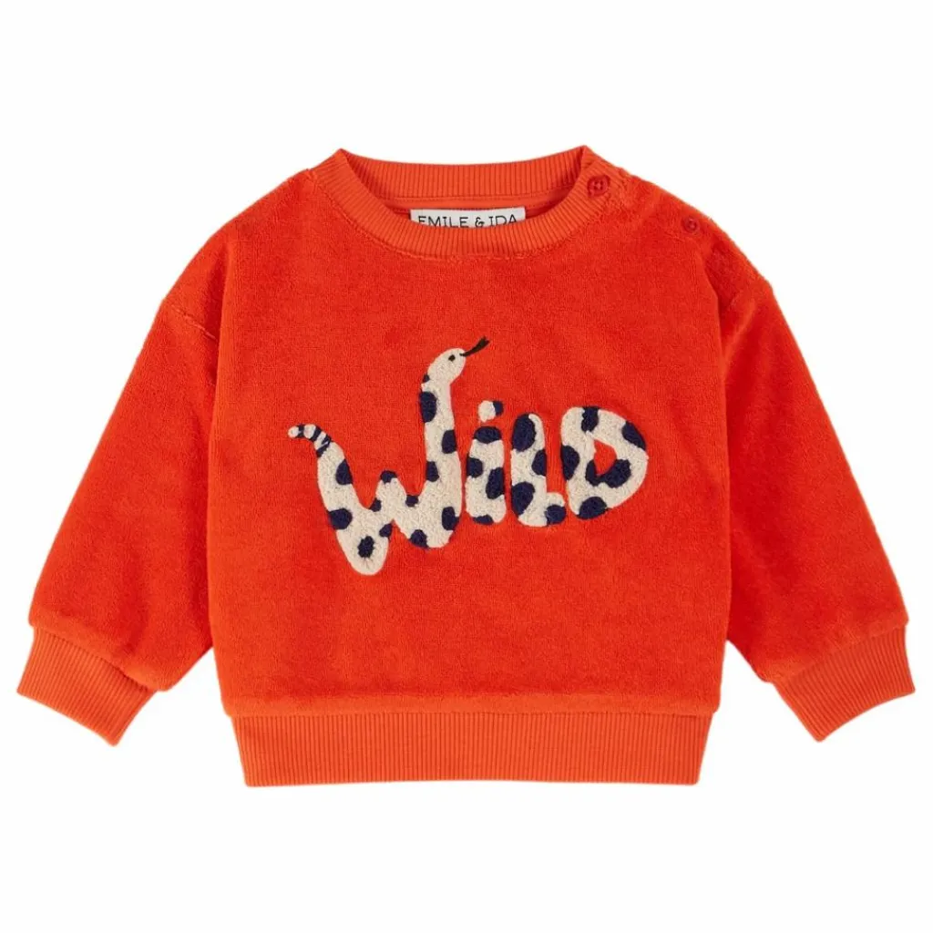 Un sweat à la couleur aussi tonique et vitaminée qu’un grand verre de jus d’orange, aussi doux que la mousse des bois.