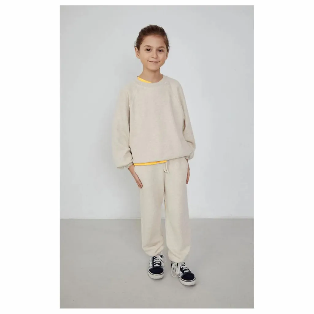 Le pantalon de jogging pour enfant Itonay est conçu dans un tissu chiné, à l’intérieur très doux. Cette matière très visuelle en fait une pièce confortable et singulière. Il se porte seul ou associé au sweat de la même famille.