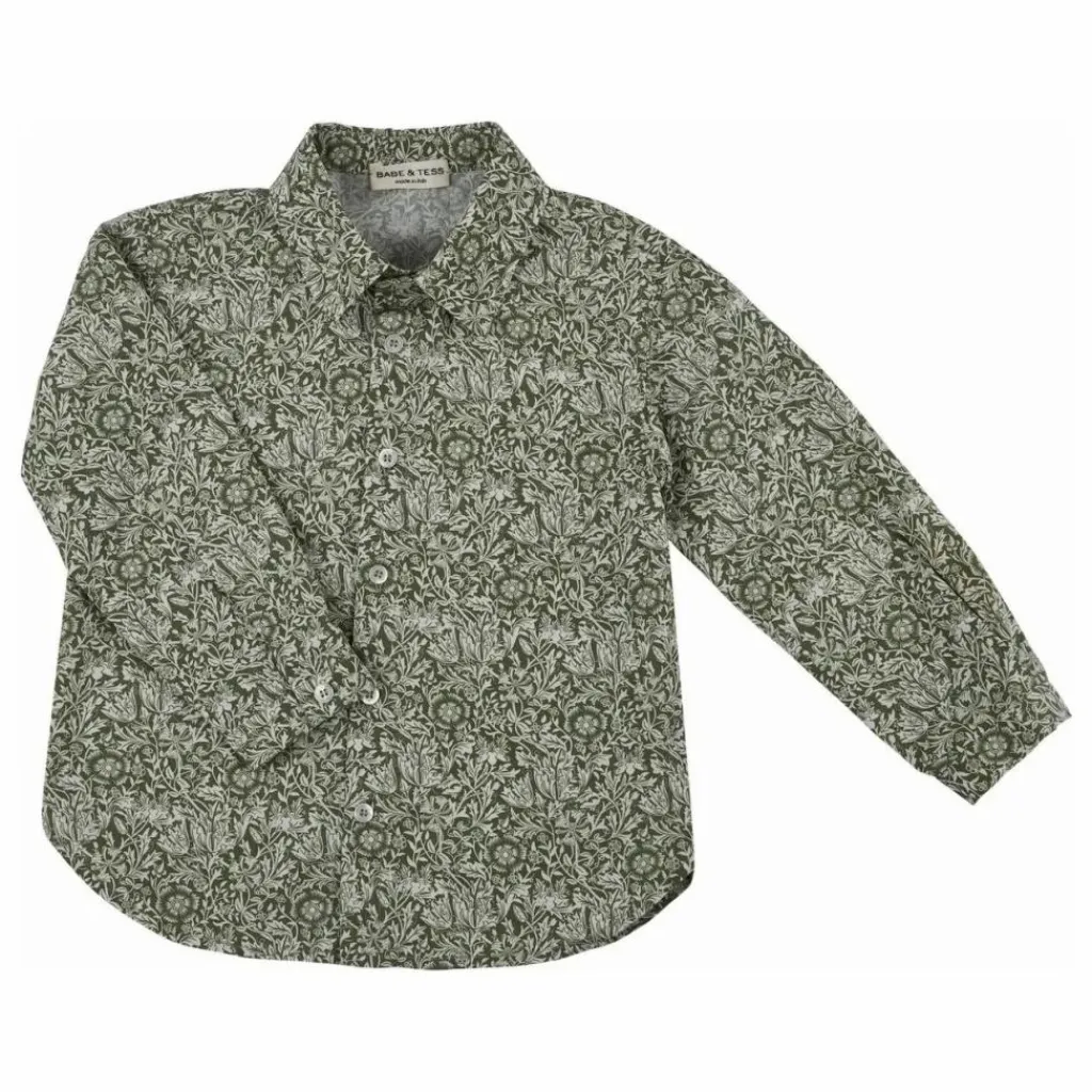 - CHEMISE EN COTON EXTENSIBLE À IMPRIMÉ FLORAL OLIVE