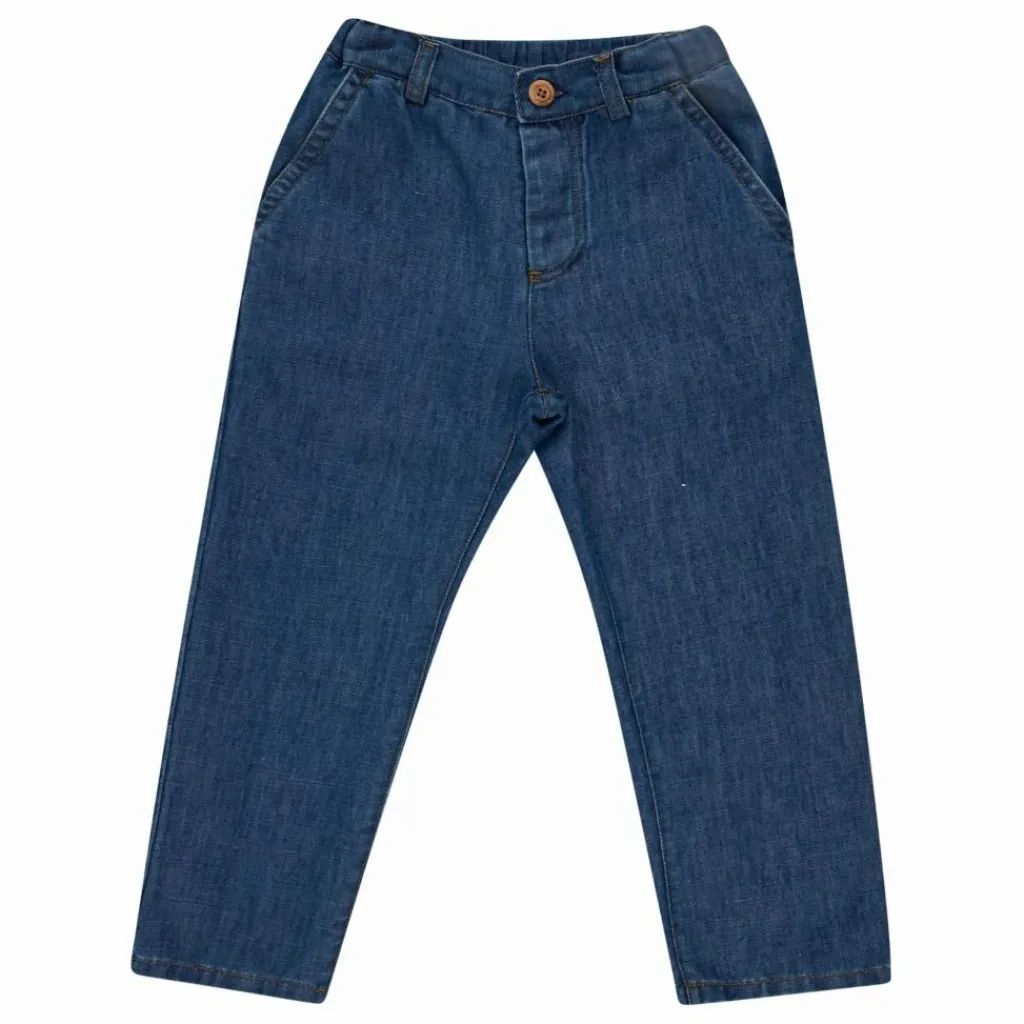 - PANTALON EN DENIM AVEC CEINTURE RÉGLABLE POUR S’ADAPTER À LA FORME DU CORPS DE L’ENFANT EN LIN COTON