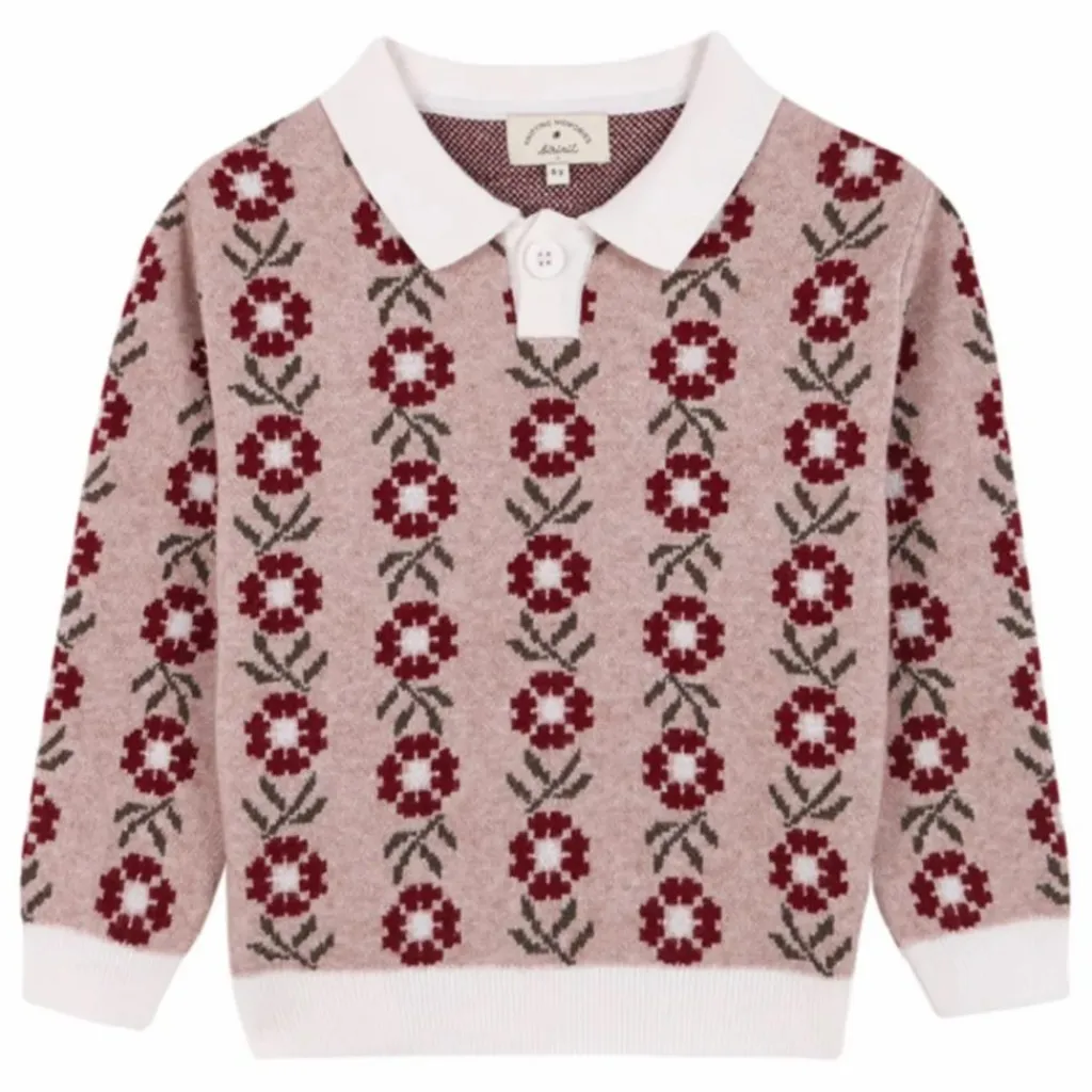 - Pull en maille jaquard florale avec boutonnage sur le devant. Col, poignets et ourlet contrastés.