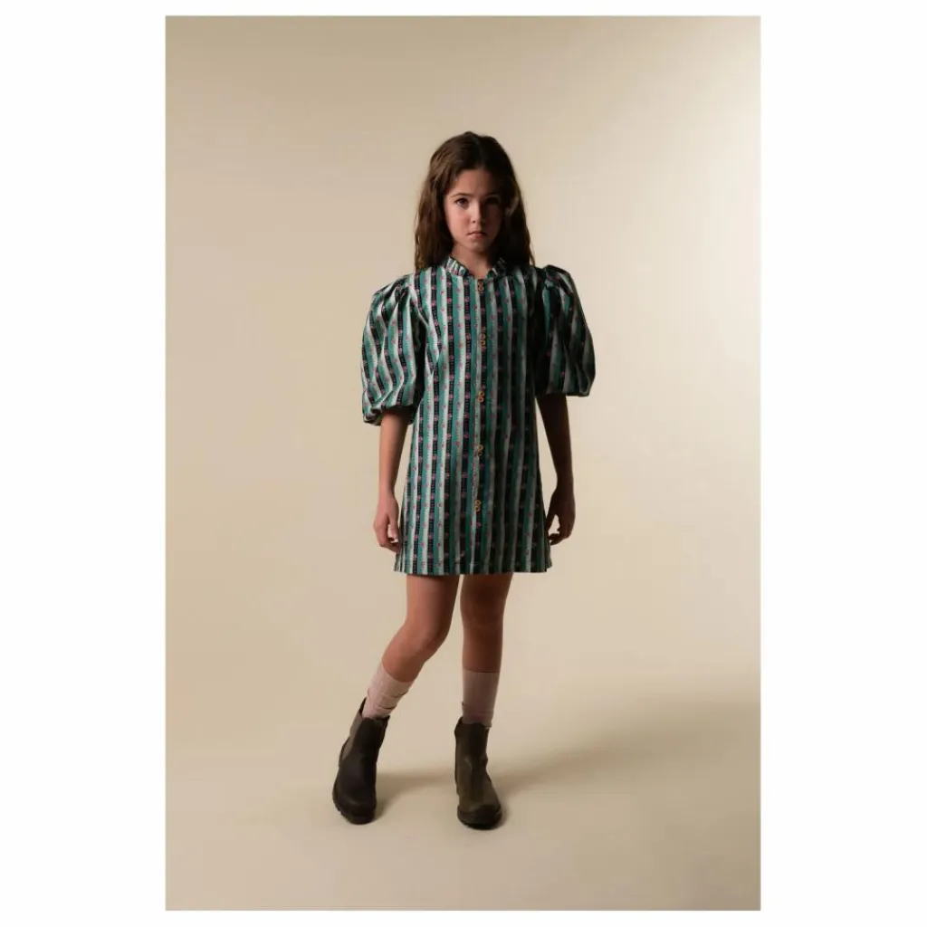 - Robe imprimée en gots 100% coton biologique, boutonnée sur le devant. Manches en volume.