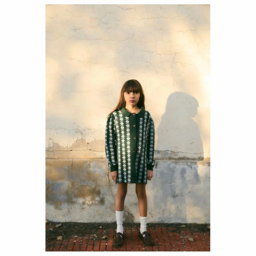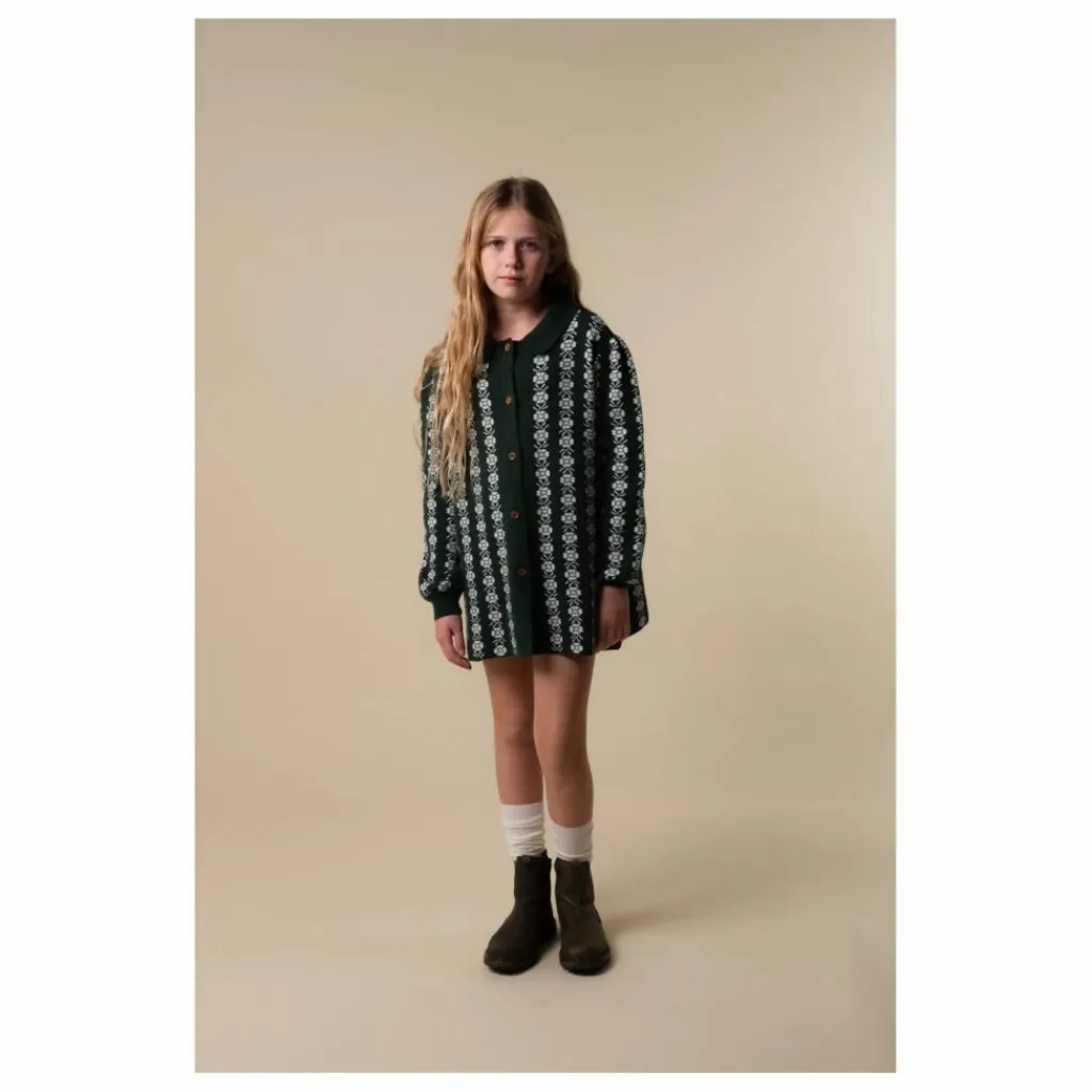 - Robe en maille jacquard florale avec patte de boutonnage sur le devant et col peter pan.