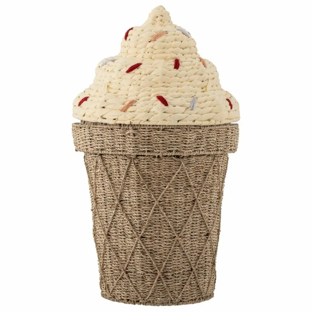 - Le Cillie panier avec couvercle de Bloomingville MINI représente une jolie glace en gaufre avec des vermicelles sur le dessus. Ce panier amusant et pratique offre un grand espace de rangement pour tous les objets préférés de l’enfant, apportant une touche ludique et décorative à la chambre d’enfant. Le panier en forme de glace est doté d’un couvercle facile à retirer, permettant aux petites mains d’accéder facilement aux jouets et peluches et de les ranger à nouveau.