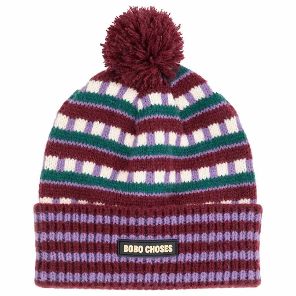 Enfant Bobo Choses Accessoires De Mode|Bonnet Pompom Rayé Fibres Recyclées |