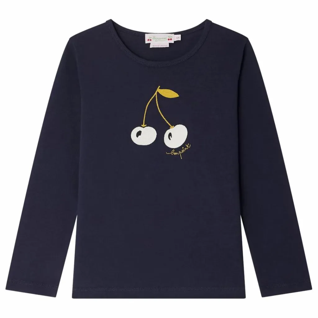 - Le t-shirt Tidjiane pour fille est un indispensable au quotidien. Orné d’une broderie cerise colorée sur la poitrine, ce modèle à manches longues est confectionné en coton biologique.En coton biologiqueCoupe droiteCol rondManches longues
