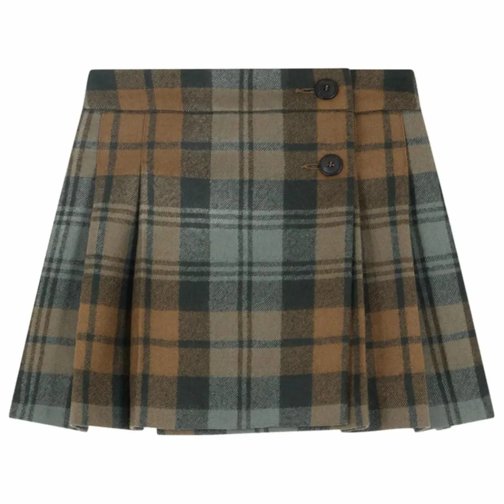 - La jupe Talissa pour fille s’inspire du kilt classique et le décline dans des tons chaleureux. La taille est réglable pour ajuster le modèle à la morphologie.En twill de laine certifiée qui garantit le bien être animalPlisséeFermeture par deux boutons devant