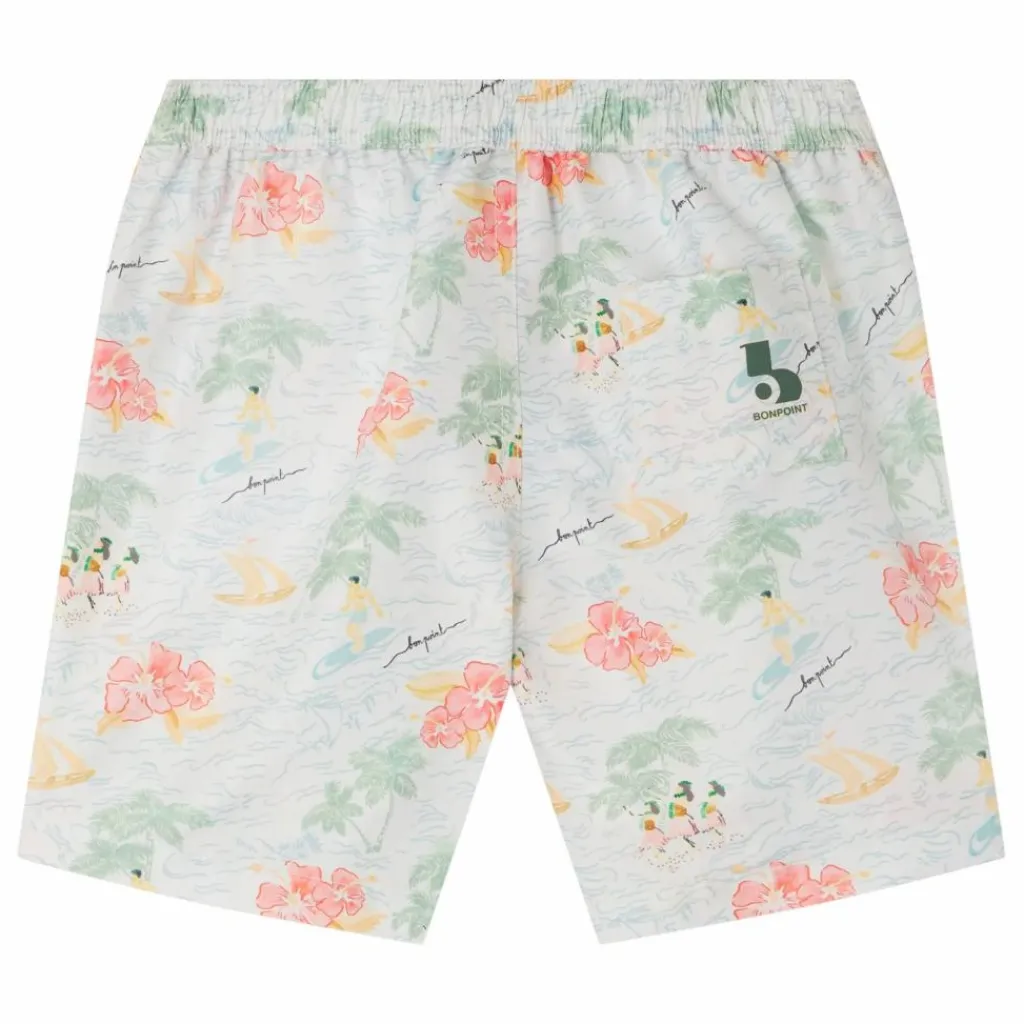 - Le short de bain Ariel pour garçon possède un imprimé original évocateur des îles polynésiennes. Un logo B décore la poche plaquée au dos.