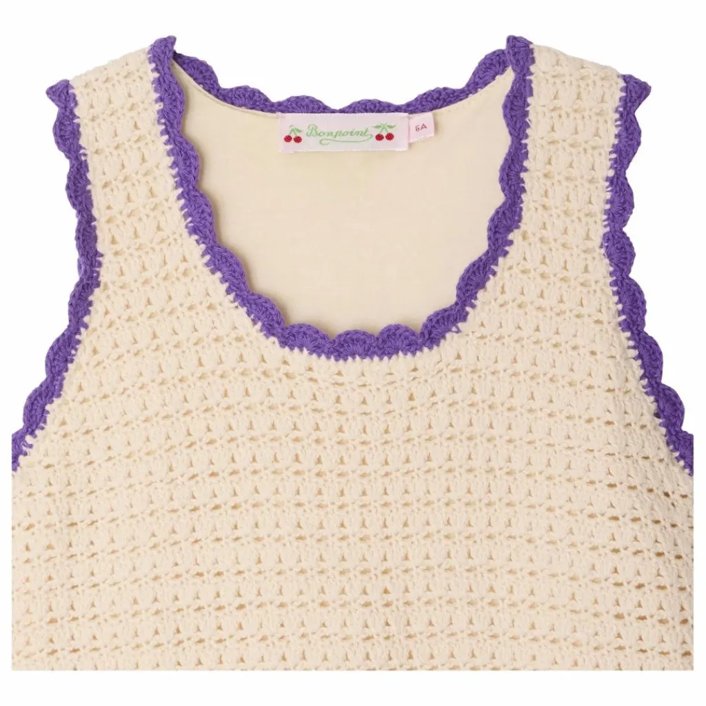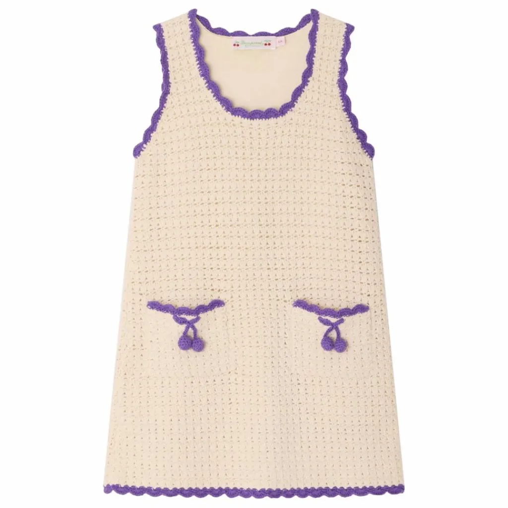 - Cette robe pour fille Lali est idéale pour se démarquer tout en bénéficiant d’un confort optimal par temps chaud. Confectionnée à la main, au crochet, elle se distingue par ses finitions festonnées contrastantes au niveau du col, des emmanchures, de la base et des poches. Ces dernières sont ornées de pampilles en forme de cerise.