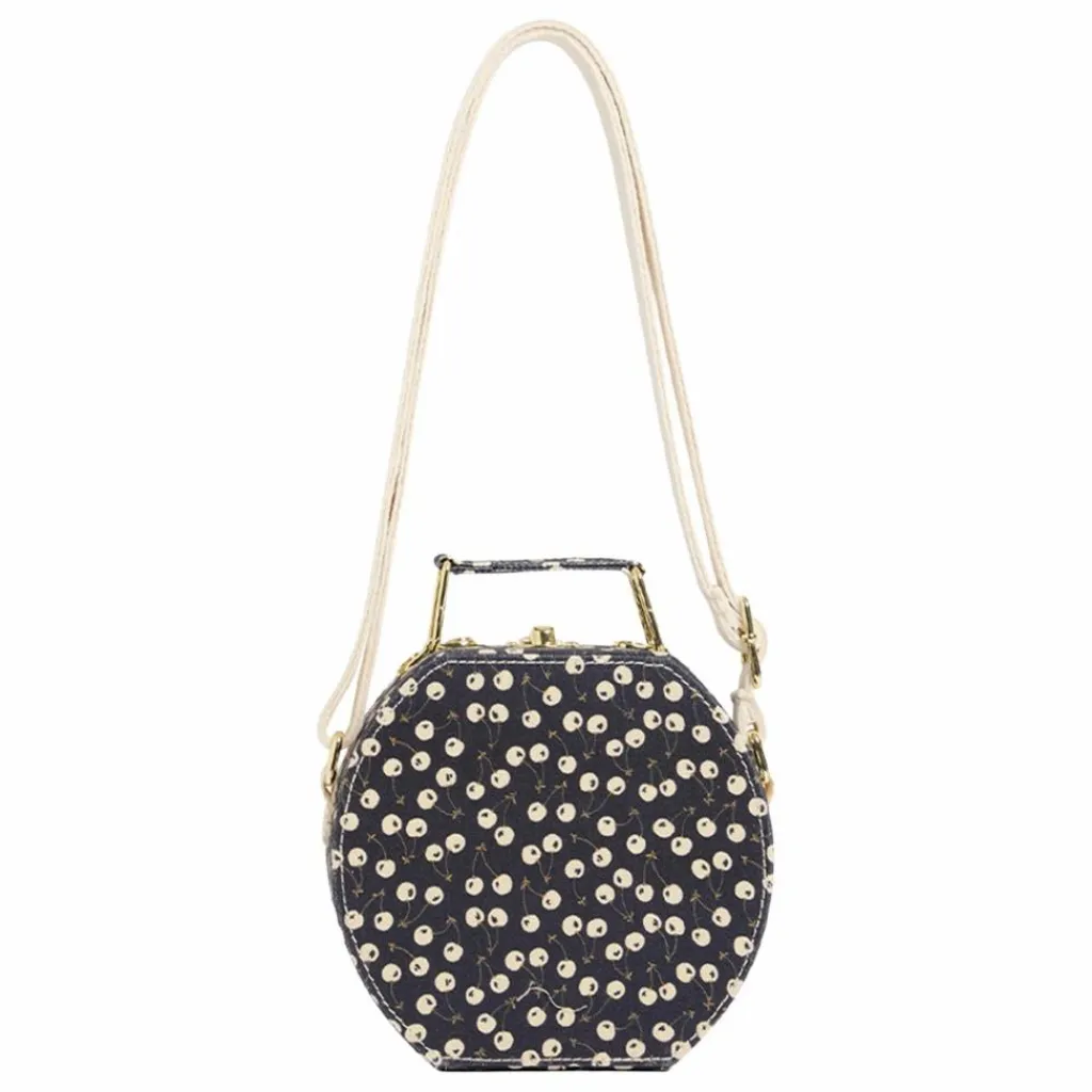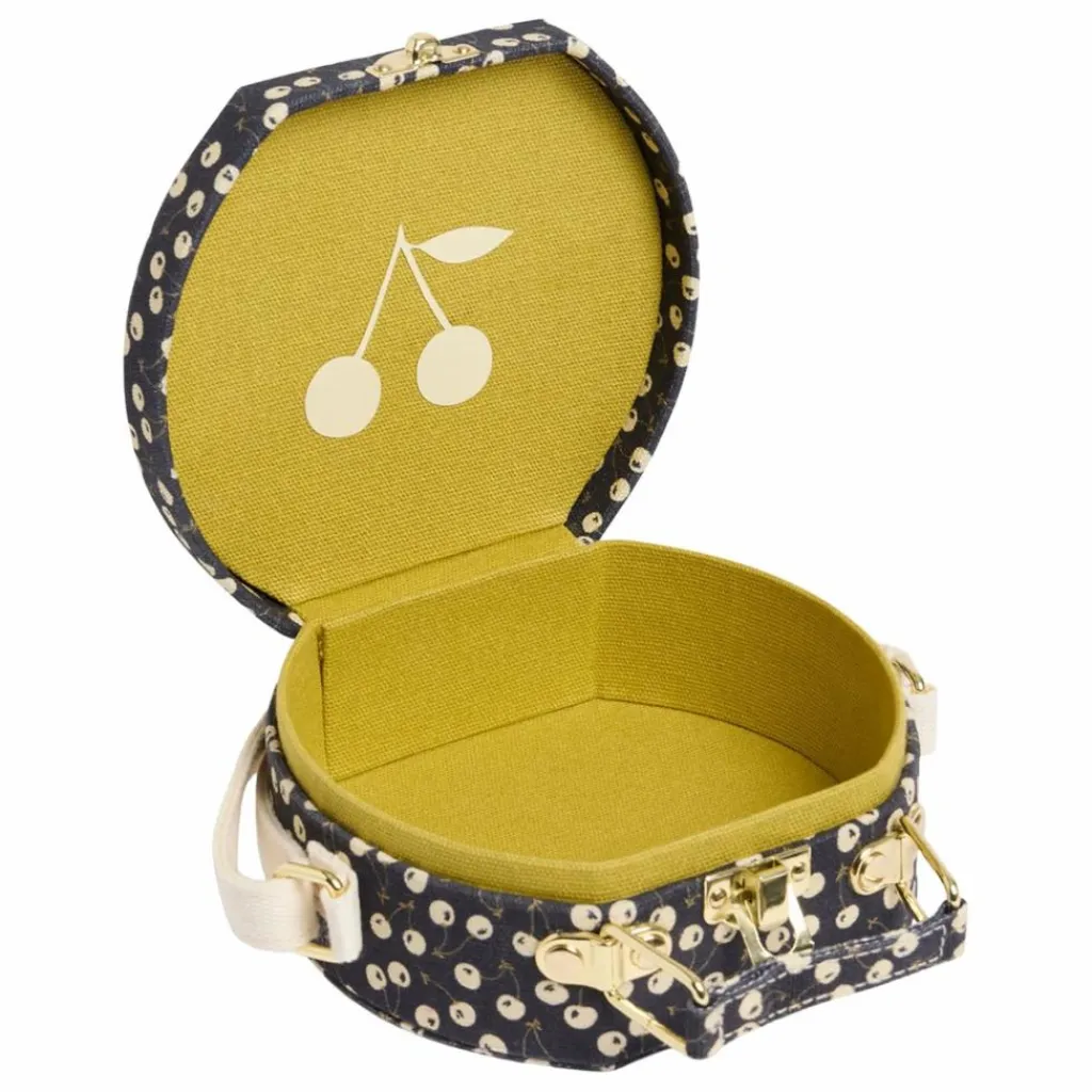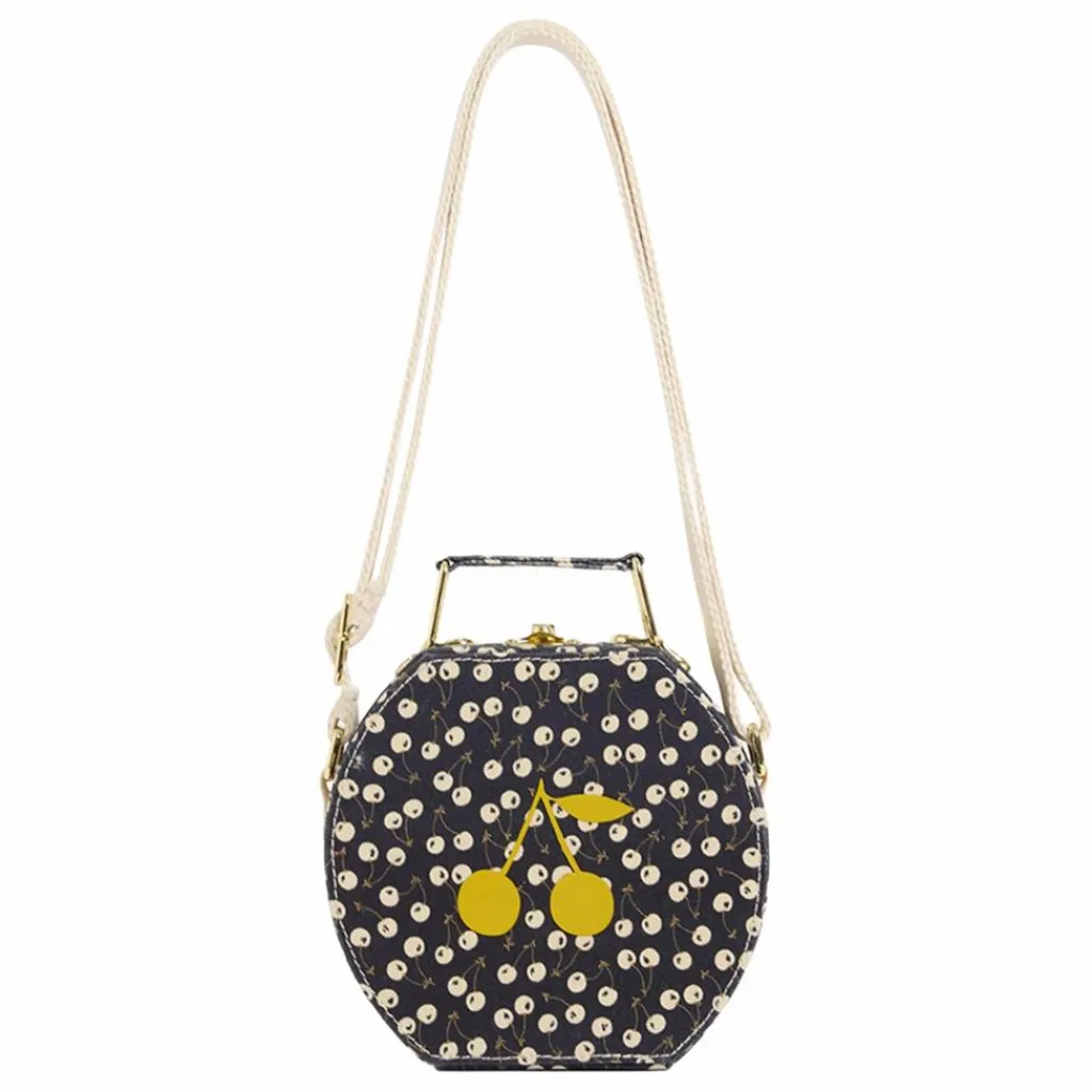 - Le sac valisette Jadore pour fille s’approprie les cerises emblématiques, en imprimé et en logo contrastant devant. La poignée et la fermeture sont en métal doré.En toile de cotonBandoulière contrastante réglableIntérieur uni avec cerise sous le couvercle