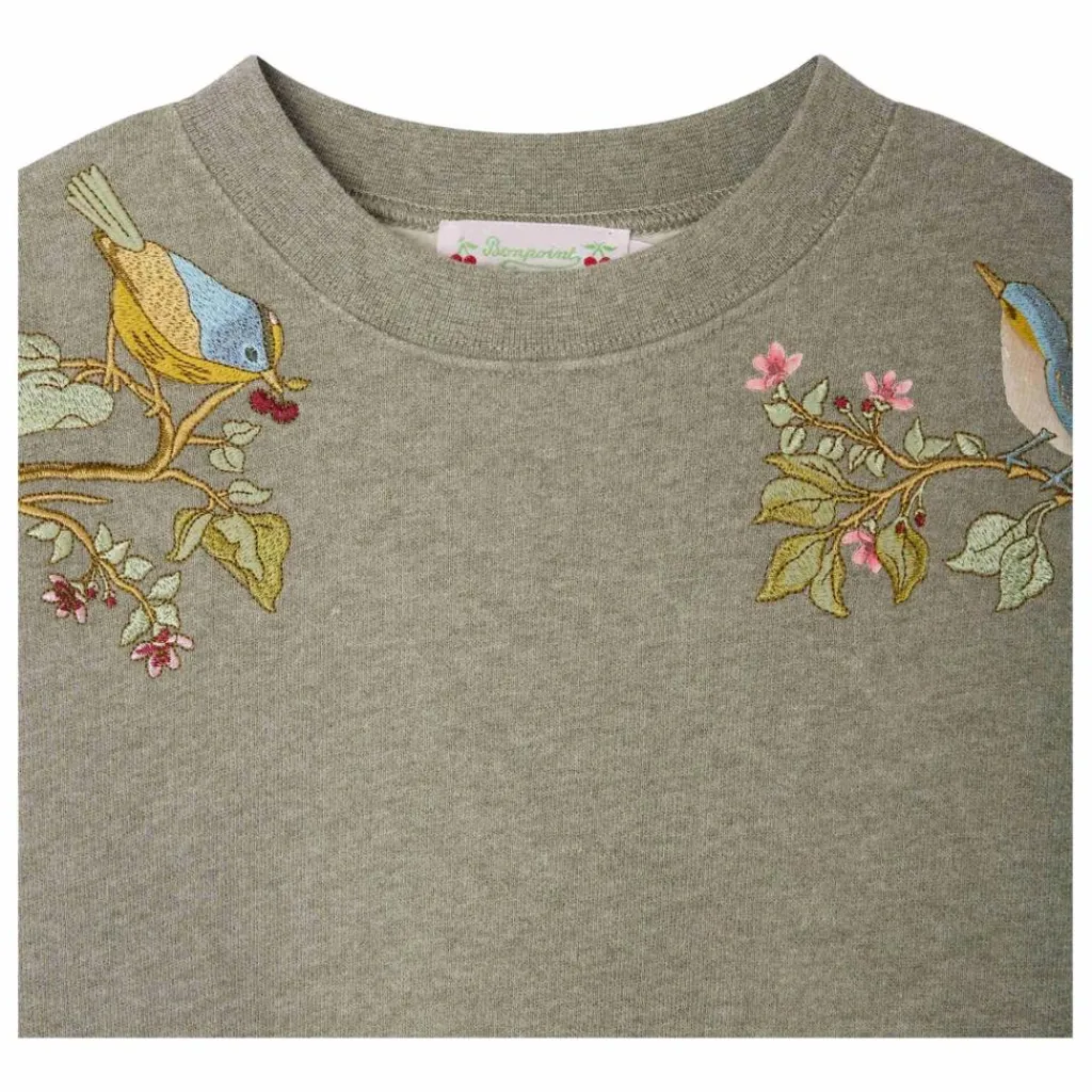 - Le sweat Tayla pour fille remporte tous les suffrages avec ses broderies oiseaux hautes en couleur sur les épaules. Il est confectionné en coton majoritaire issu de l’agriculture biologique.En coton biologique et matière recycléeManches longues raglanCol rond
