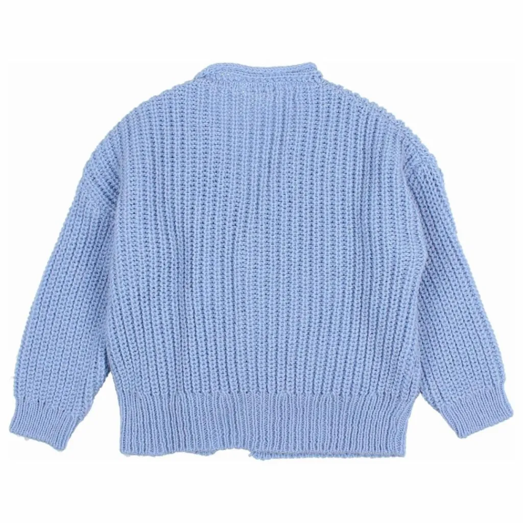- Cardigan en tricot doux. Encolure en V. Fermeture par bouton sur le devant. Poignets et ourlet côtelés. Étiquette sur l’ourlet.