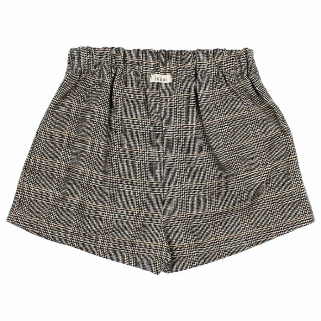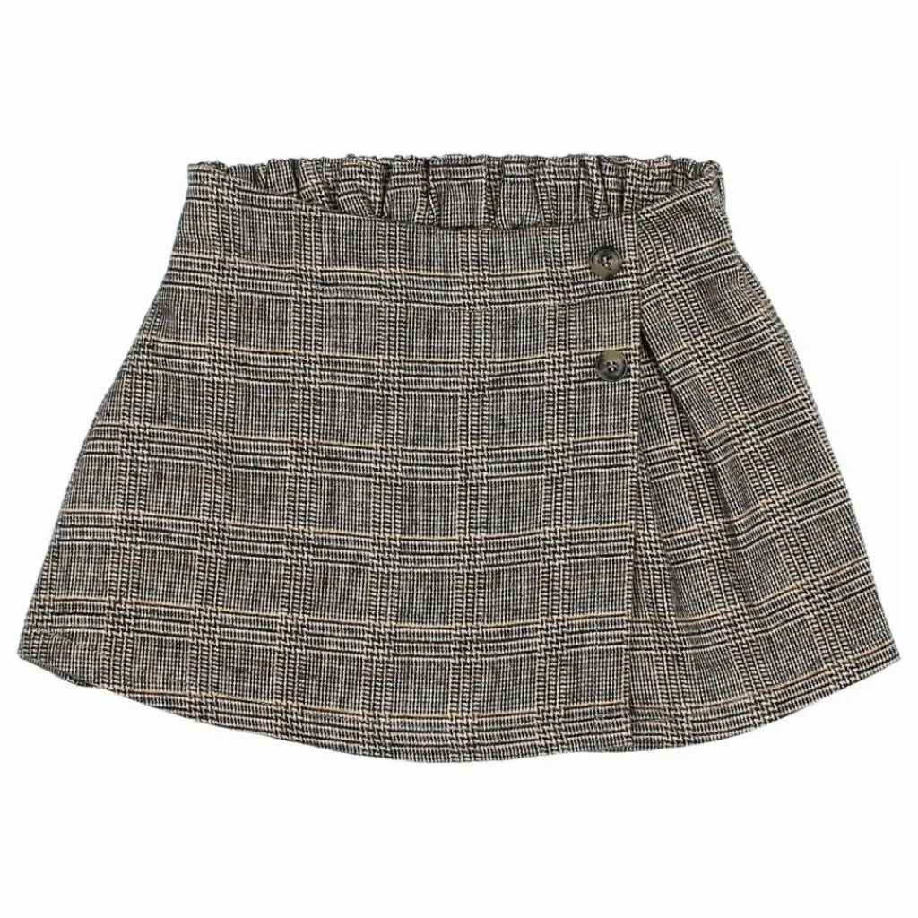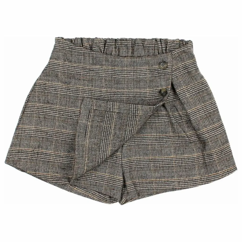- Jupe courte à carreaux du pays de Galles. Ceinture élastique. Fermeture de la jupe par boutons sur le devant.