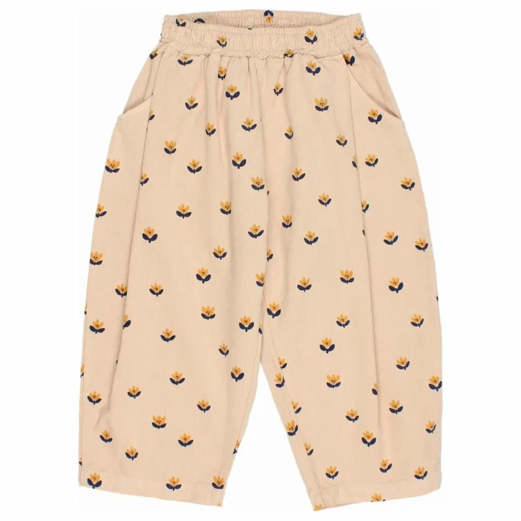 - Pantalon en micro velours côtelé avec imprimé « naïf ». Taille élastiquée. Plis et poches sur le devant.