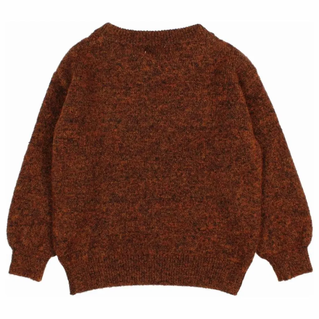 - Pull en tricot mélangé. Col rond. Poignets et ourlets côtelés. Étiquette sur l’ourlet.
