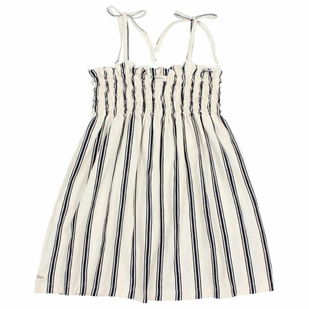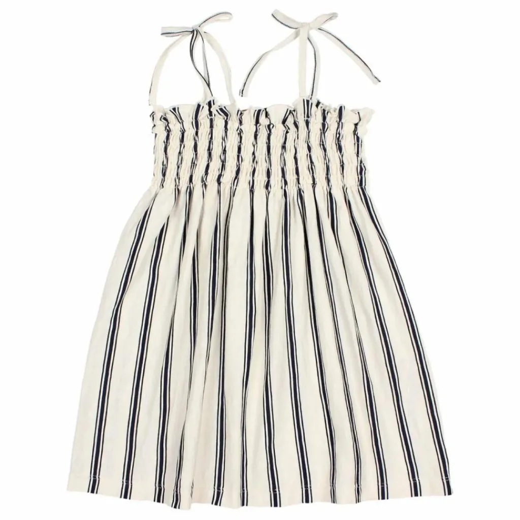 - Robe à imprimé rayé. Encolure droite. Bretelle de poitrine élastiquée avec doublure intérieure. Bretelles réglables. Bas évasé.