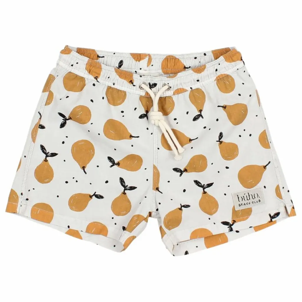 - Maillot de bain imprimé poires. Taille élastiquée pour un meilleur maintien. Cordon de serrage en coton ajustable à la taille. Etiquette décorative sur l’ourlet. Poche Plastron au dos. Intérieur en maille.
