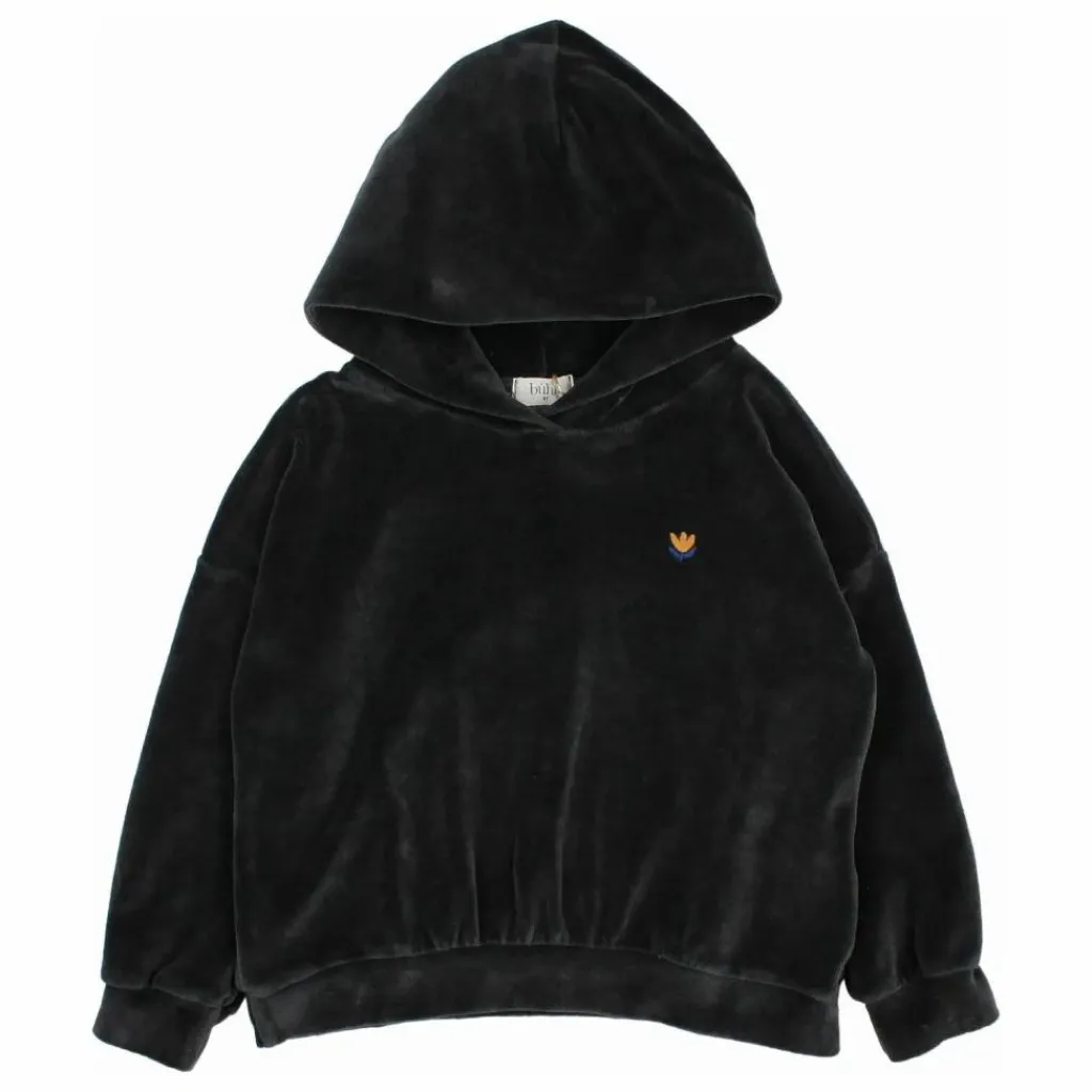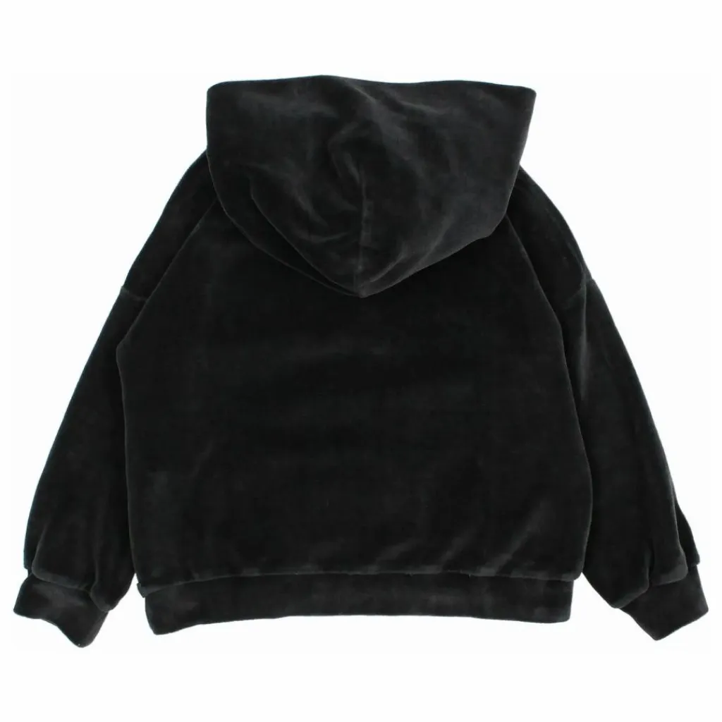 - Sweat à capuche en velours. Fleur brodée sur la poitrine. Ourlet et poignets froncés.