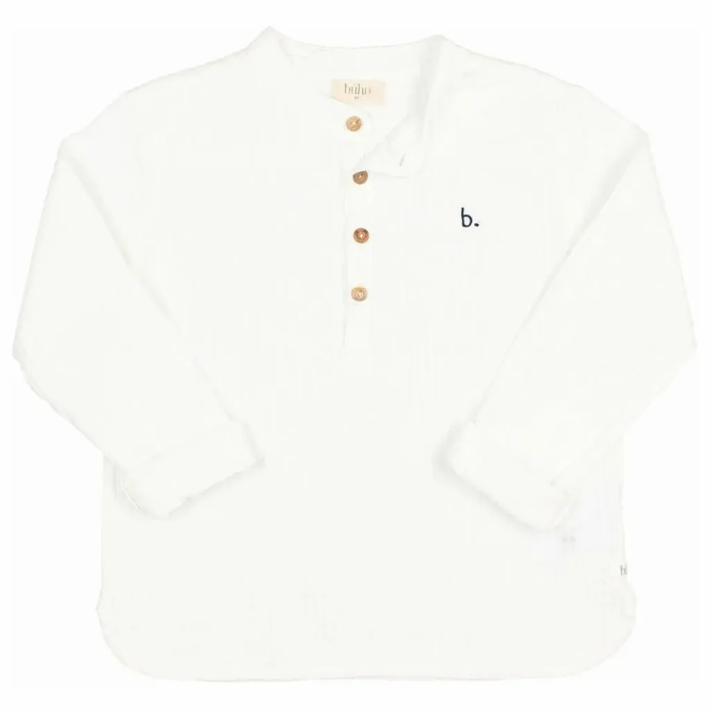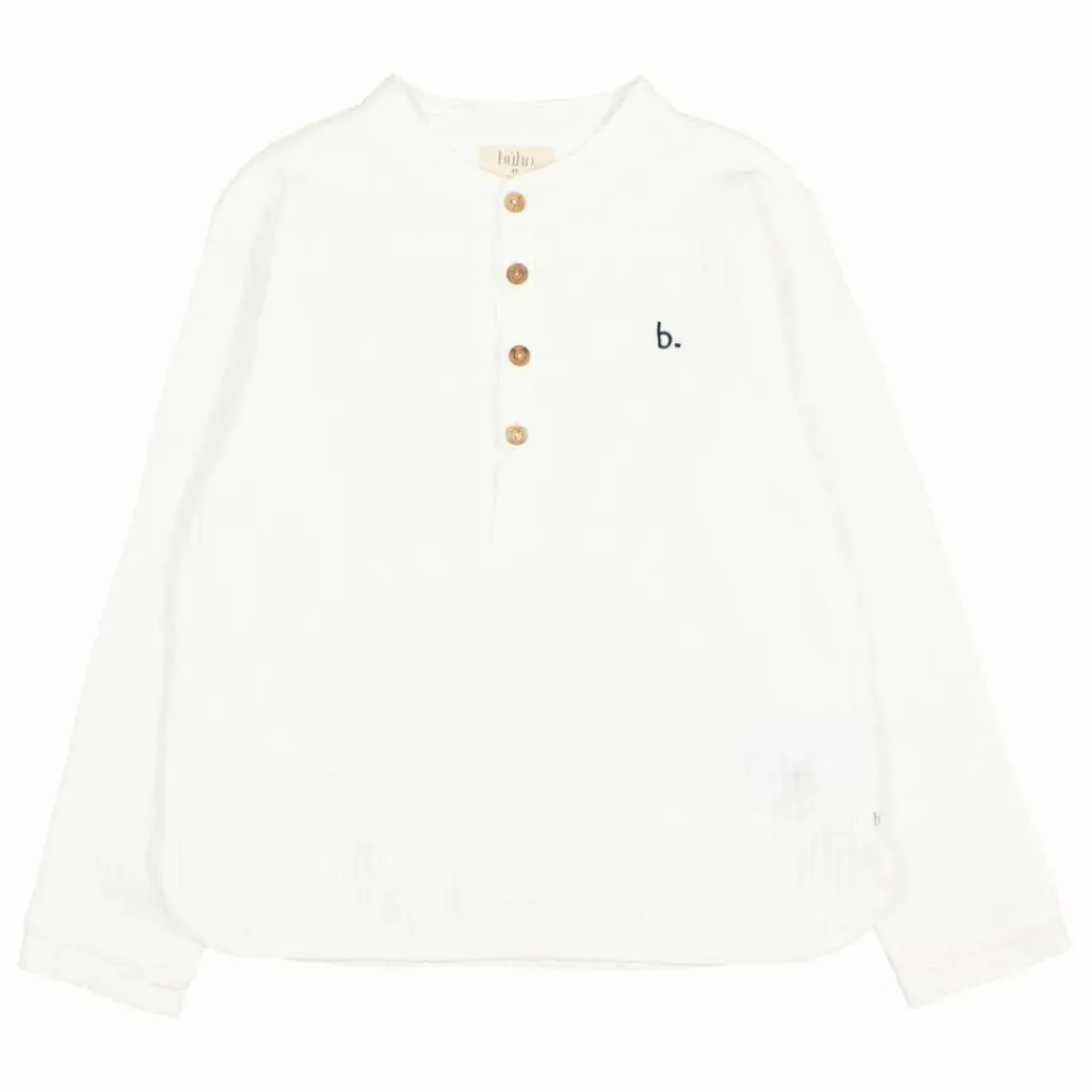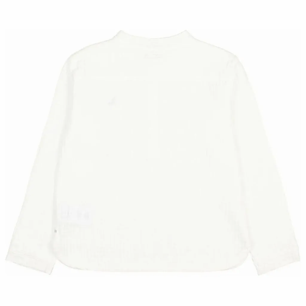 - Chemise avec broderie sur la poitrine. Col mao et manches longues. Fermeture par bouton en bois sur la poitrine.
