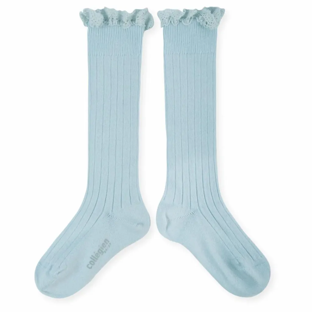 - Bon maintien, Chaussettes montantes, Froufrous, Chaud et confortable, Côtelé