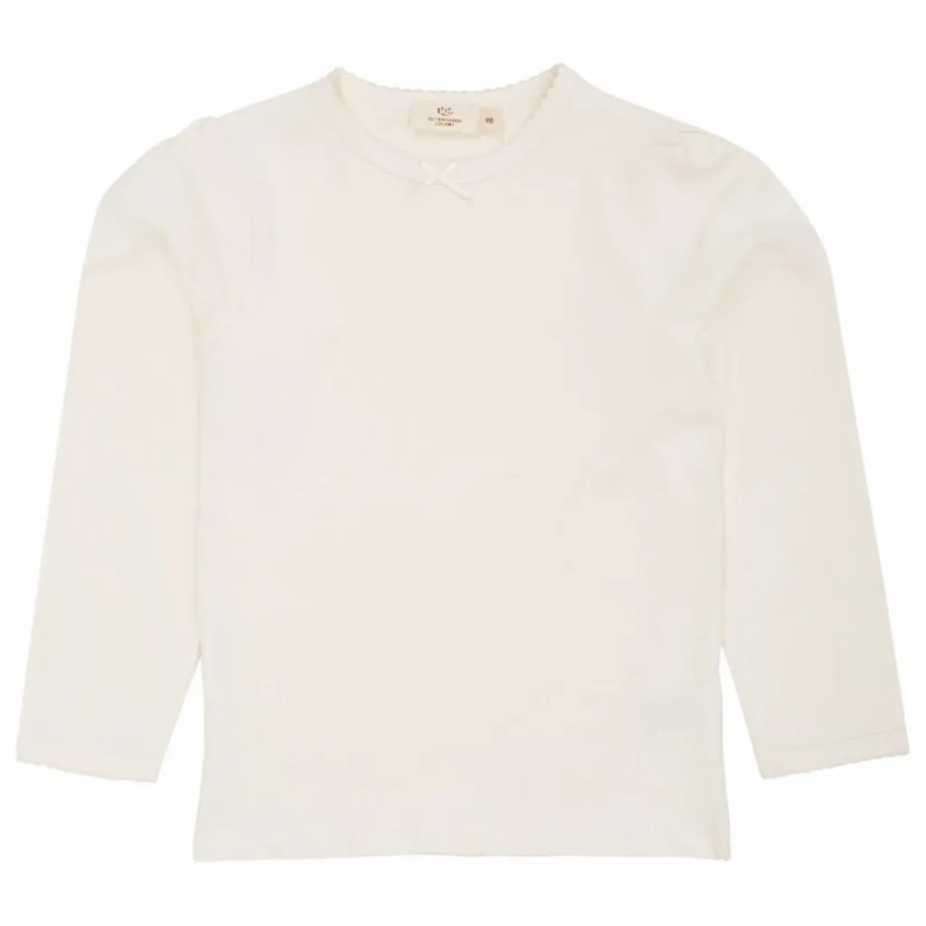 - Ce t-shirt à manches longues a un col rond avec un nœud au milieu. Le t-shirt est fabriqué en 100 % coton biologique.