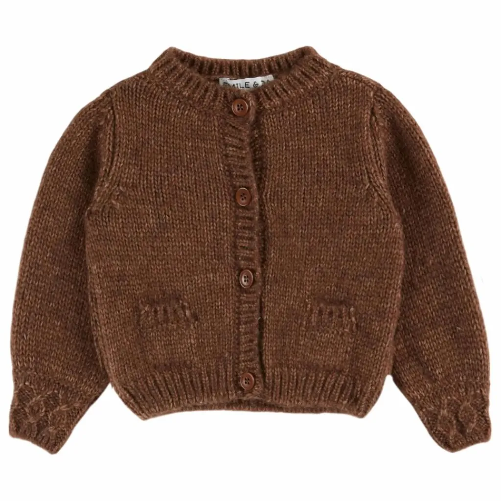 - Cardigan en laine de mérinos et coton beige dont la douceur et le moelleux sont les maîtres-mots.