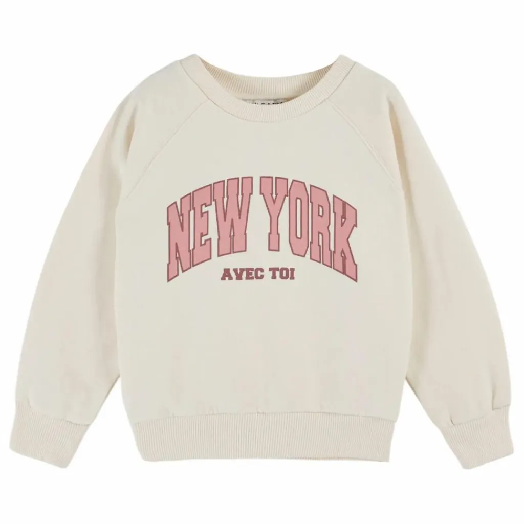 - Sweatshirt en jersey de coton biologique molletonné et gratté bitume imprimé » New York avec toi » sur la poitrine.
