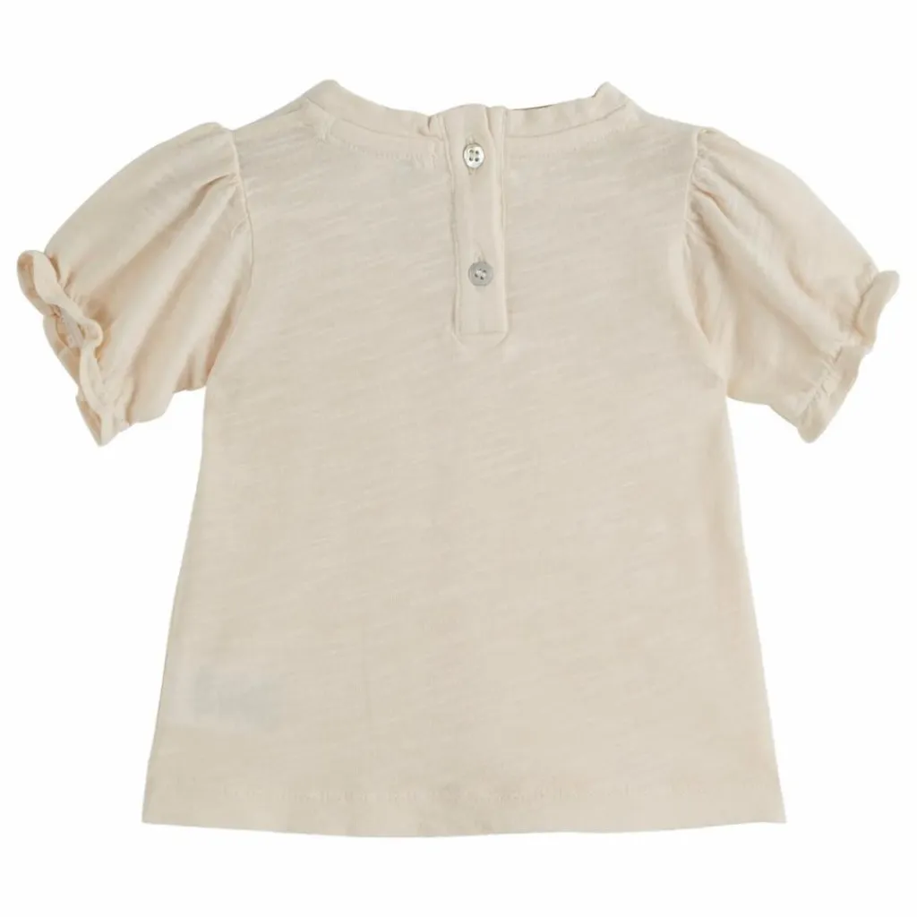 - Manches courtes bouffantes, Encolure ronde, Bords volantés
