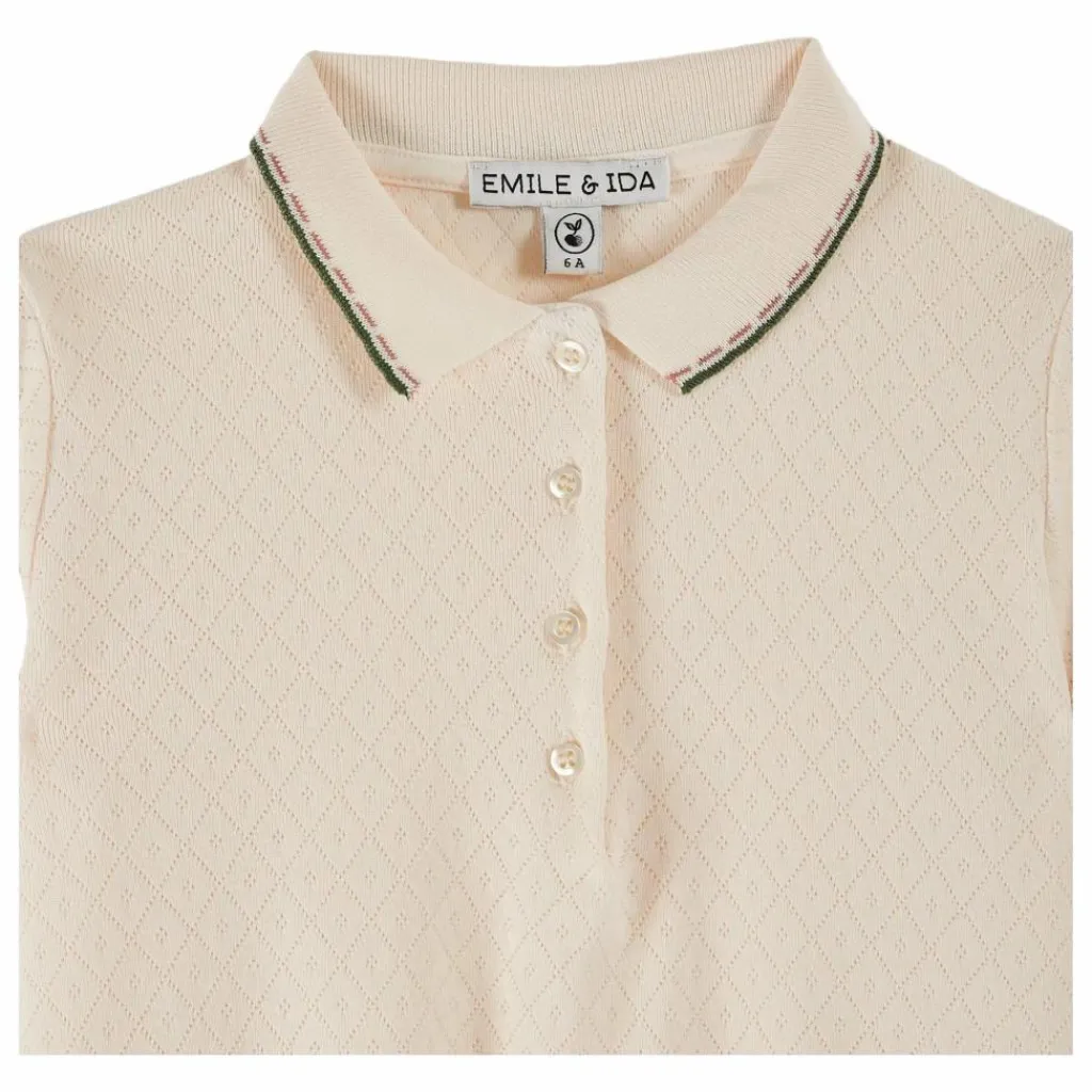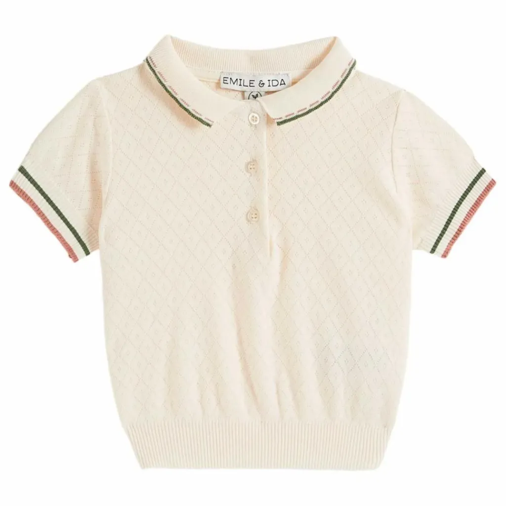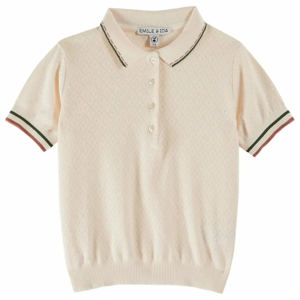 Qu’est-ce qui rend ce tee-shirt si remarquable ? Sa matière ultra-douce, son col pointu, ses bordures bleues délicatement soulignées de crème, ou encore les boutons en nacre naturelle qui ferment la patte de boutonnage ? Oui, mais c’est surtout la maille pointelle qui se distingue. Légère, aérée, respirante et confortable, cette technique de tricot laisse apparaître des mailles ajourées créant un motif répétitif subtil qui dynamise la couleur unie.