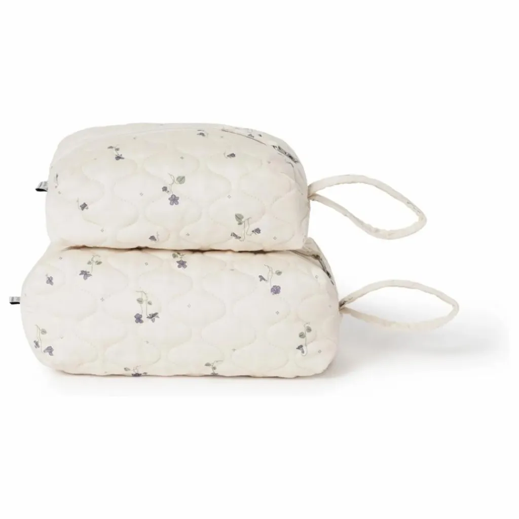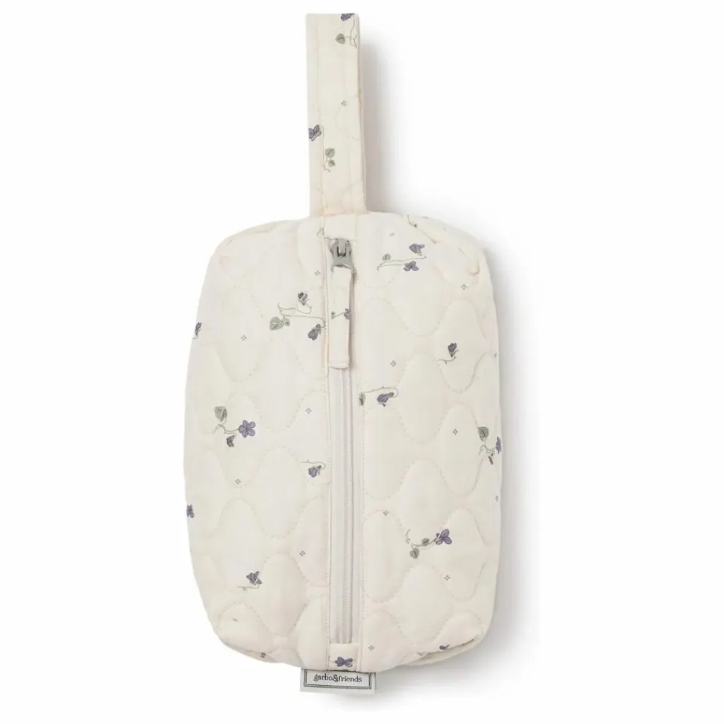 - Trousse de toilette matelassée en satin de coton biologique avec un magnifique imprimé dessiné à la main. Le sac est doté d’une poignée pratique et se ferme à l’aide d’une fermeture à glissière.