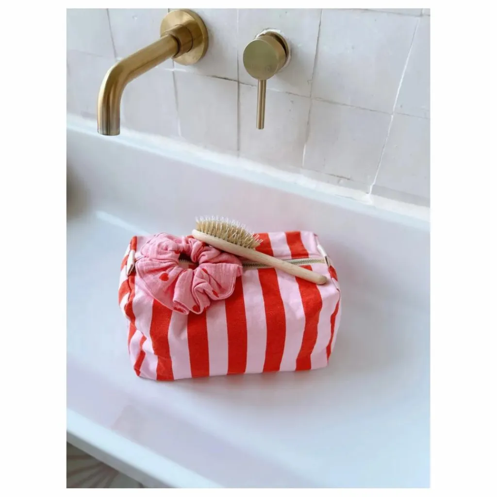 - TROUSSE DE TOILETTE VIC COLORIS RAYE TOMATO / CANDY 100% COTON DIMENSION 26*13*12CM FABRIQUE AU PORTUGAL CERTIFIE OEKO TEX