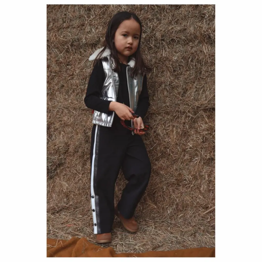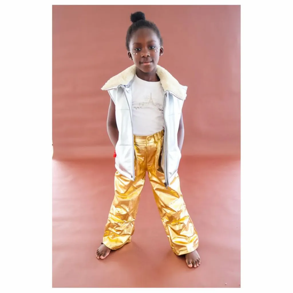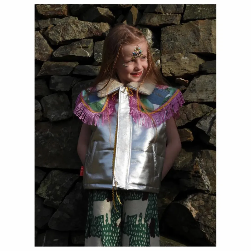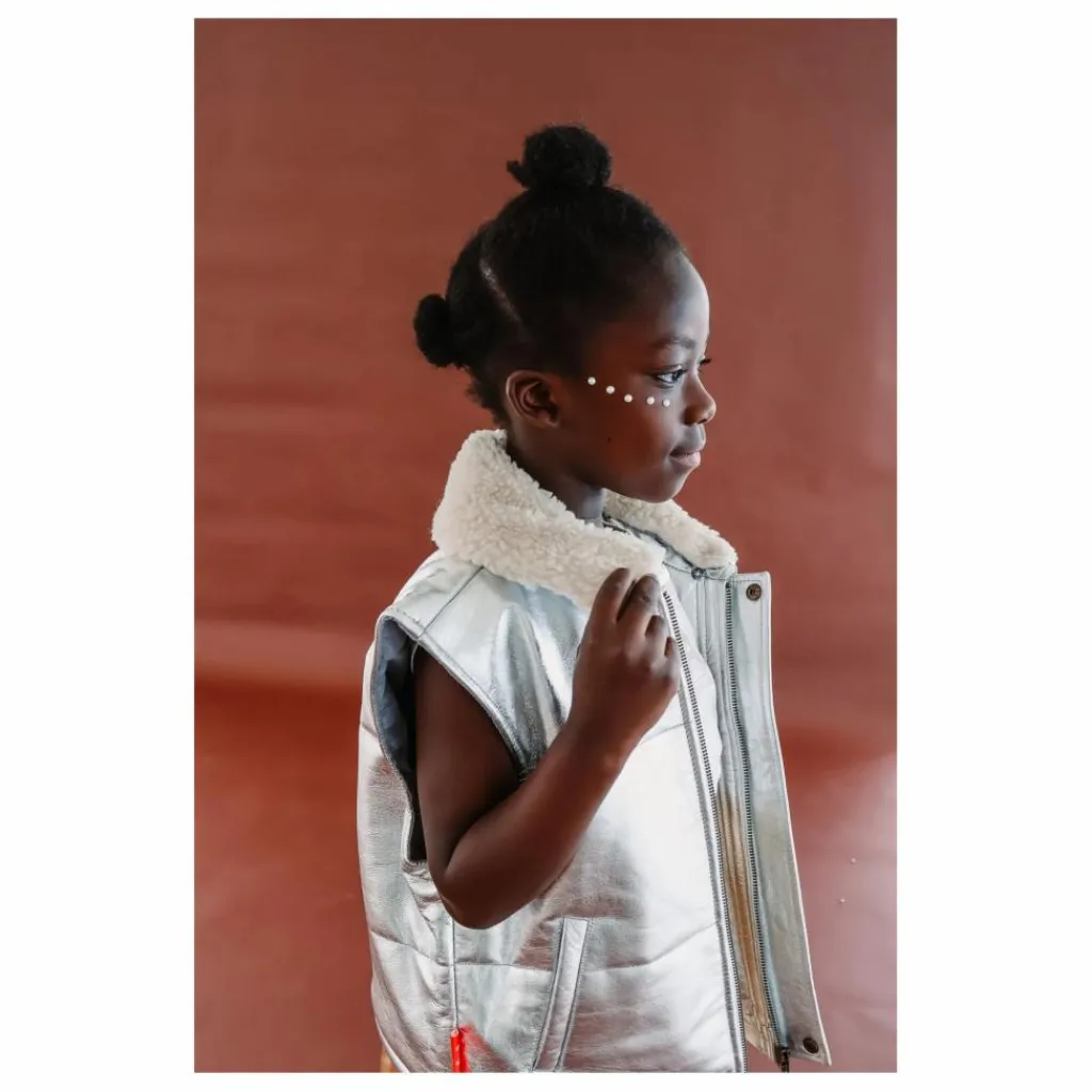 - Découvrez la veste sans manches en cuir matelassé Kids’ cool Moonlight Silver – la combinaison parfaite de style et de chaleur pour votre enfant. Fabriquée en cuir argenté de première qualité, cette veste est dotée d’un rembourrage douillet qui la garde bien au chaud. Le col amovible en peau de mouton offre une chaleur supplémentaire et un look amusant et personnalisable. Dotée d’une fermeture à glissière YKK argentée durable et de poches latérales pratiques, cette veste est aussi pratique que tendance. Idéale pour la vie de tous les jours ou les occasions spéciales, elle fera partie de la garde-robe de tous les jeunes aventuriers.