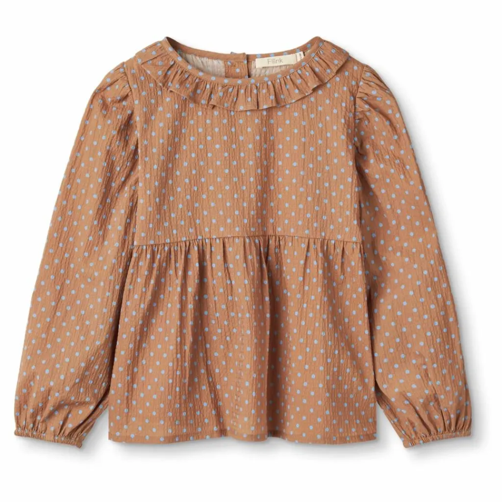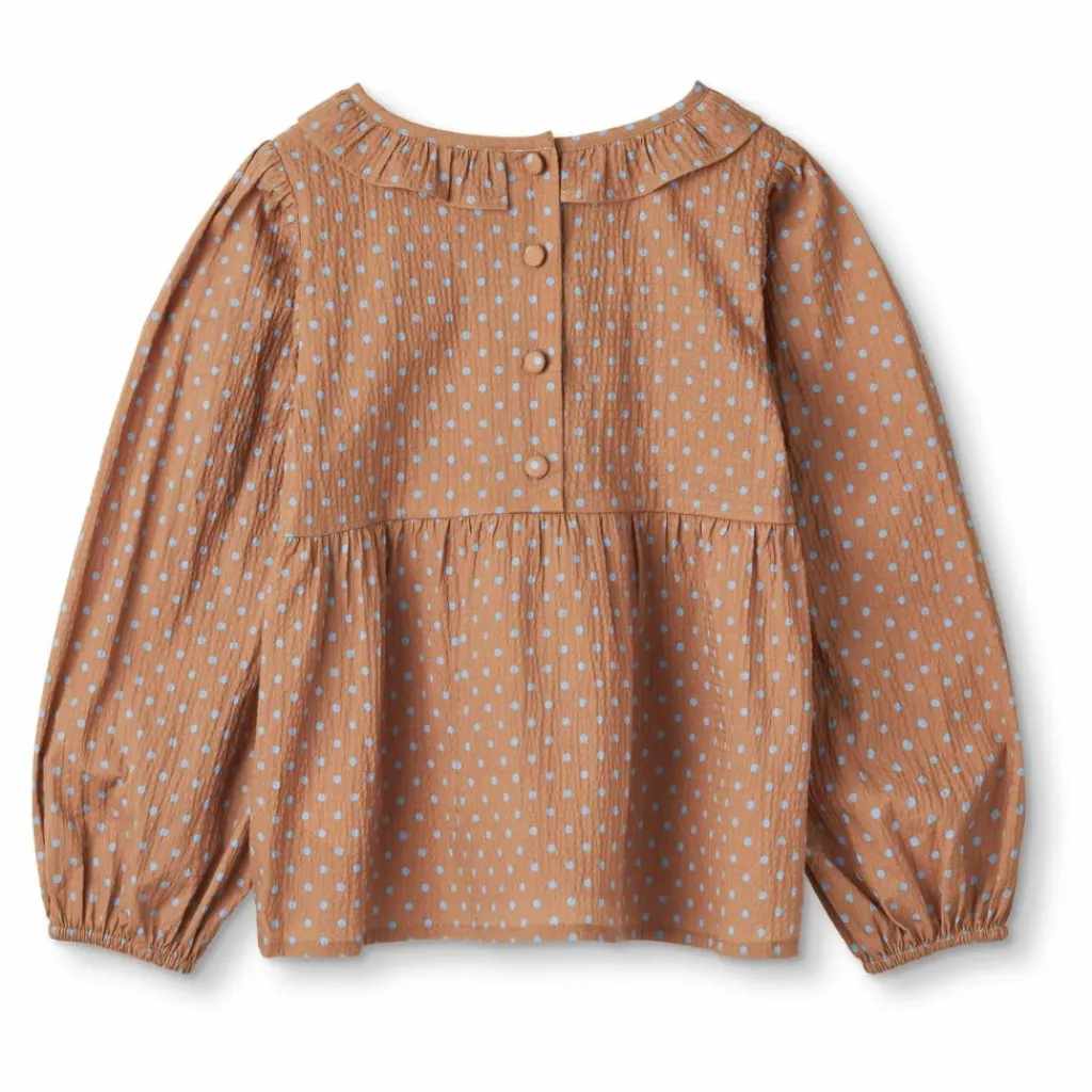 - Bas de manche élastiqué, Encolure volantée, Manches longues bouffantes, Encolure ronde