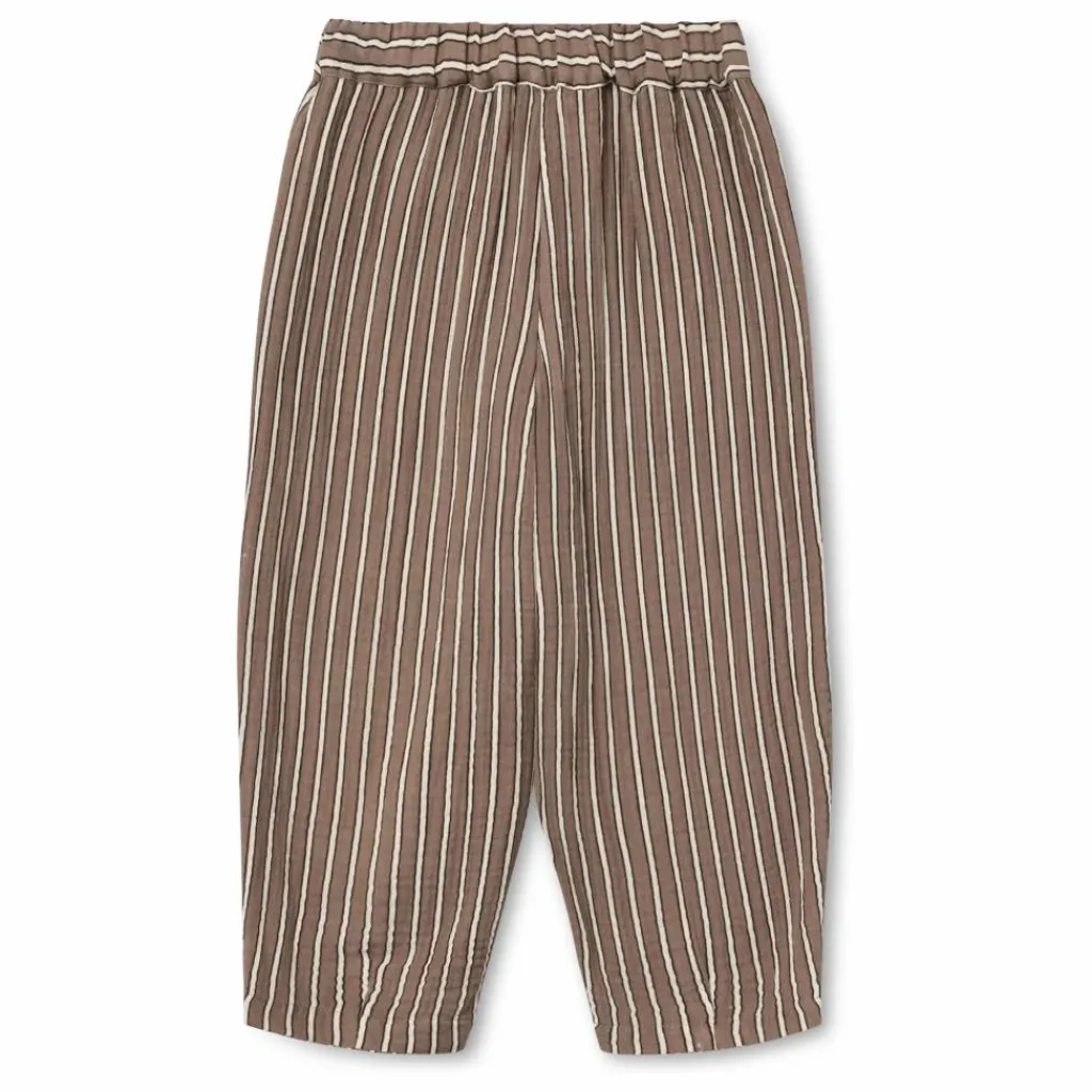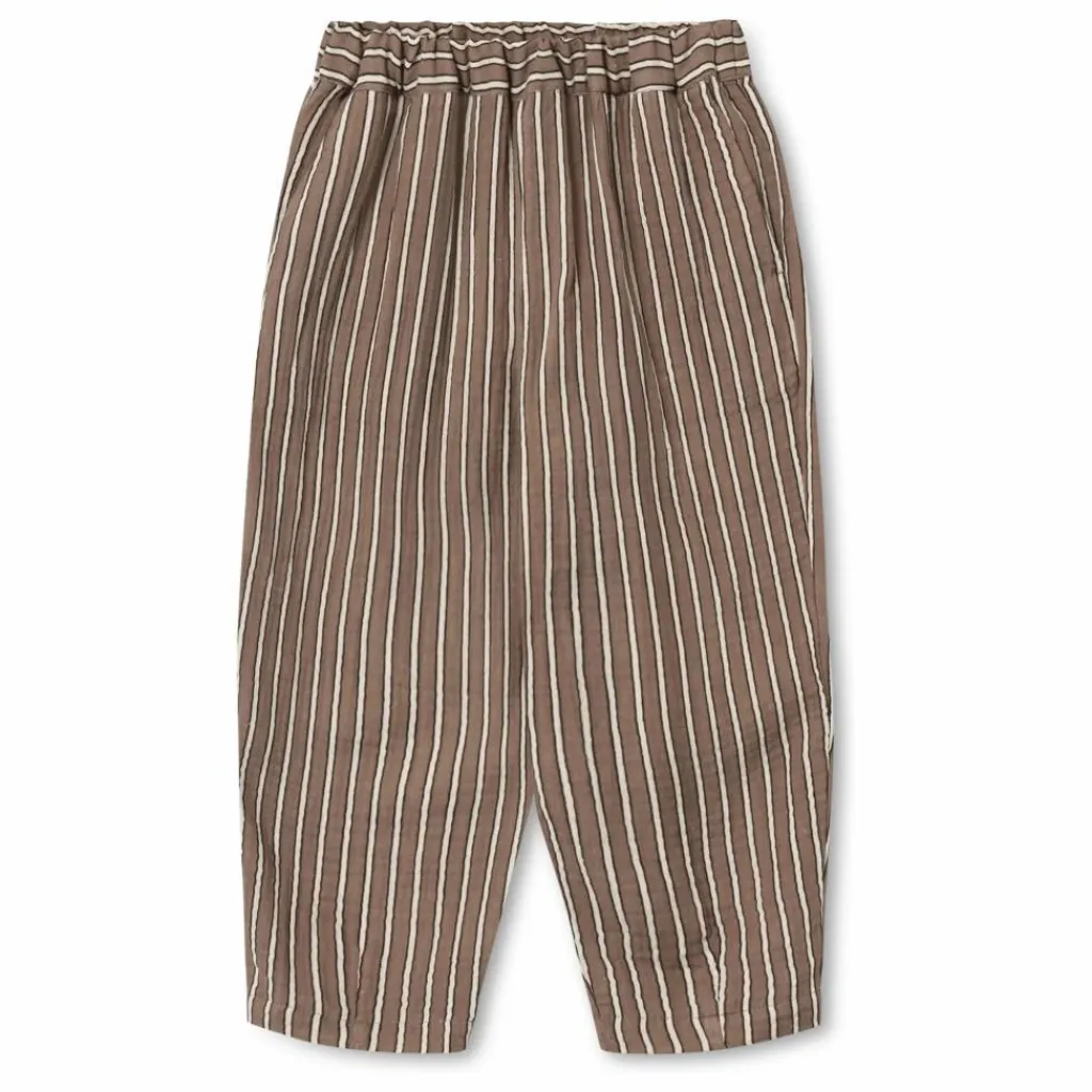 - Pantalon tissé doux dans une qualité de mousseline douce. Le pantalon est ample, avec un élastique à la taille et des poches sur les côtés.