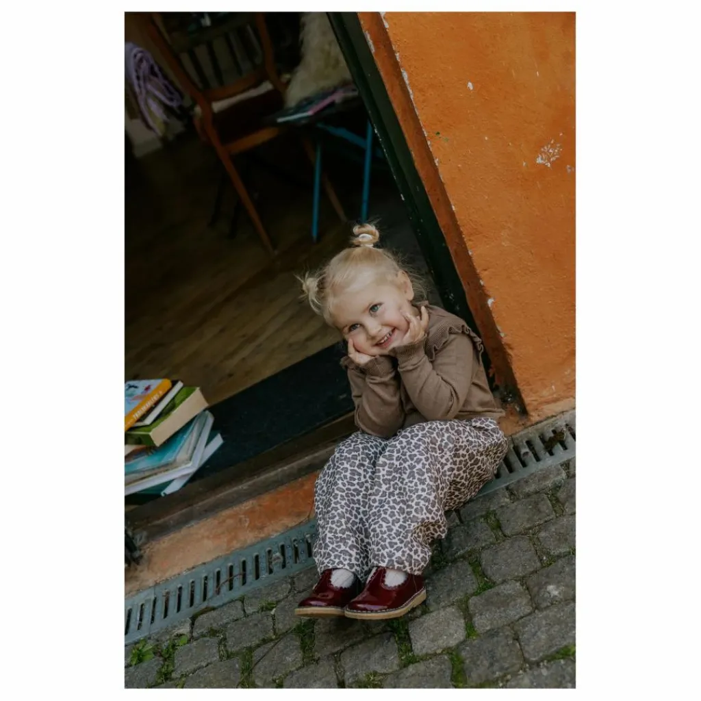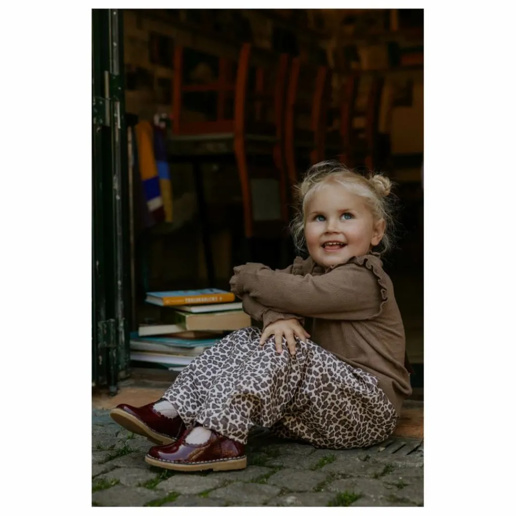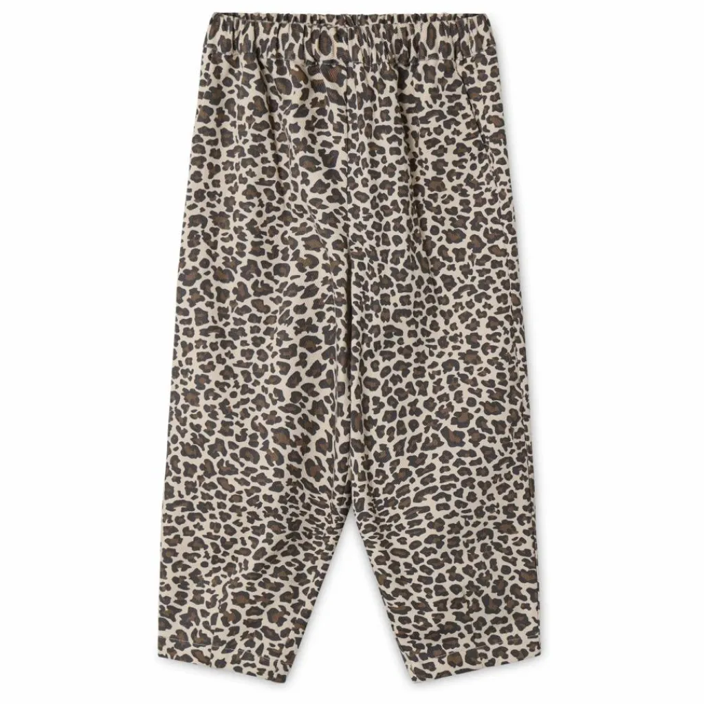 - Pantalon long à imprimé léopard. Le pantalon a une ceinture élastique, des poches dans la couture latérale pour cacher les choses excitantes que l’enfant trouve sur son chemin.