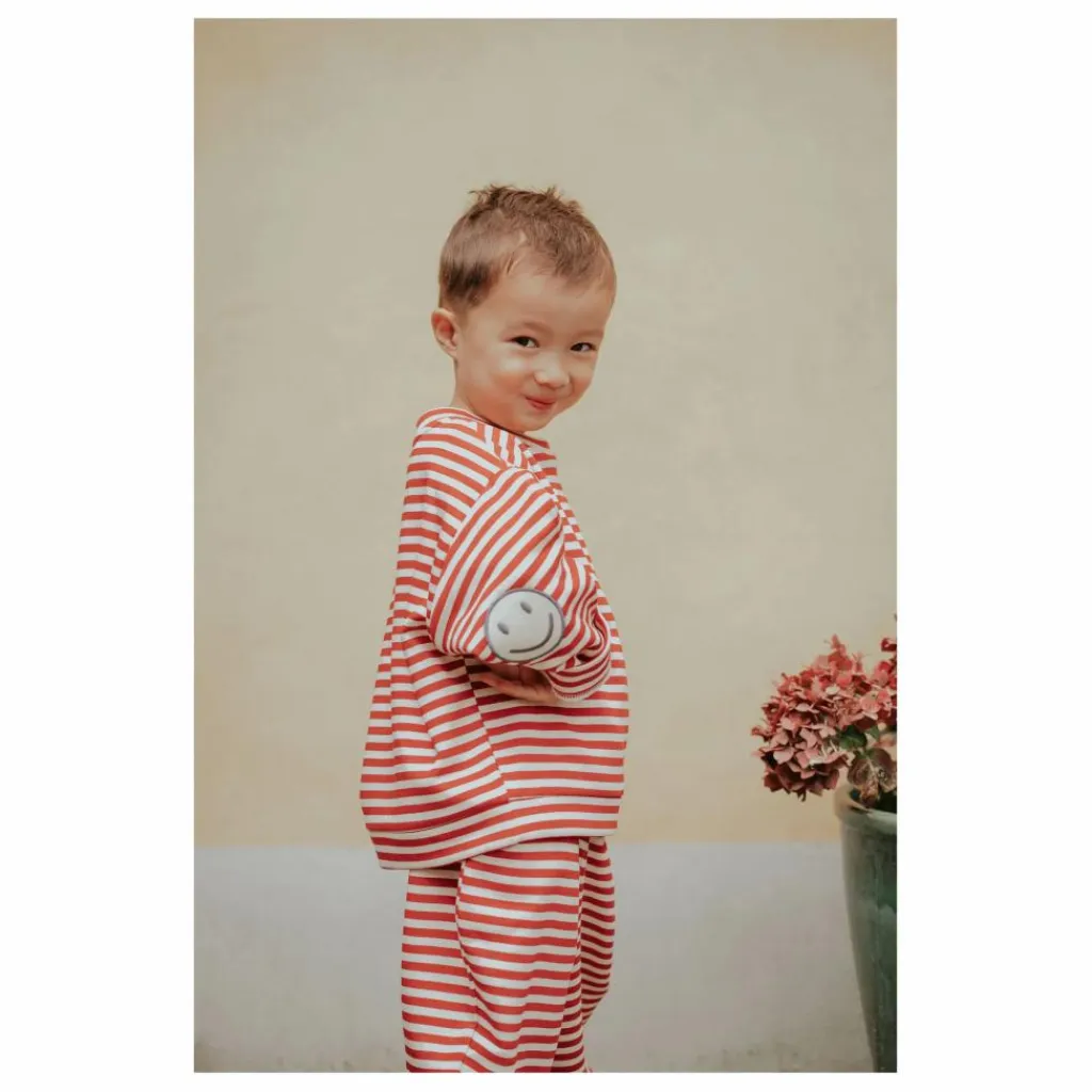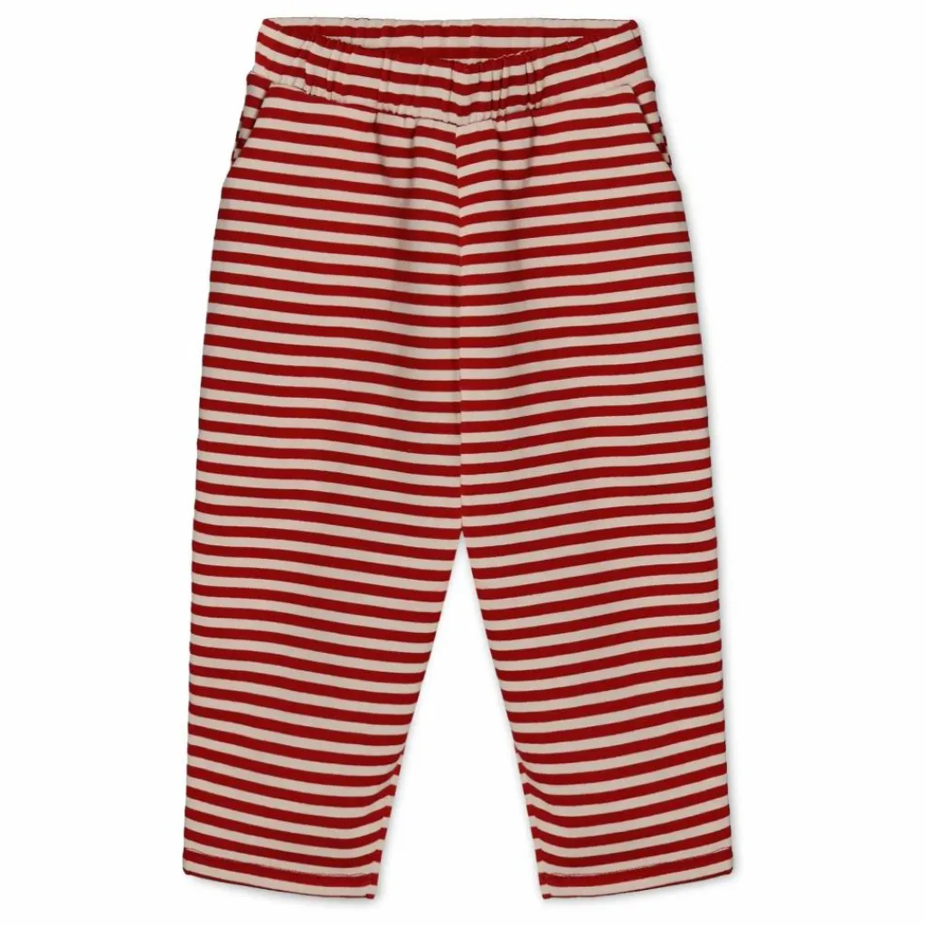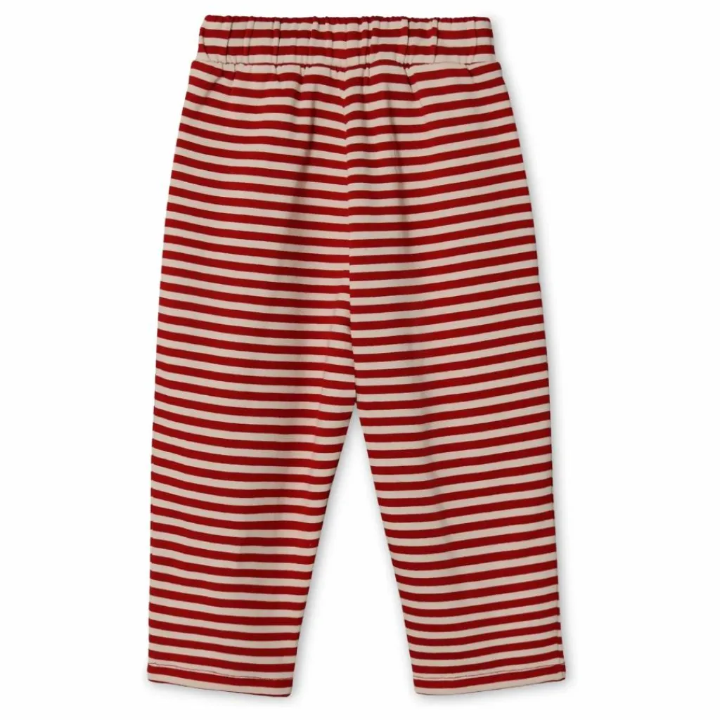 - Pantalon en sweat doux avec élastique à la taille. Le pantalon a des rayures rouges et sable et des poches sur les côtés. Le pantalon a une coupe ample et spacieuse, ce qui le rend agréable à porter et à regarder. Le pantalon peut être associé au SWEATSHIRT ALVIN dans le même imprimé.